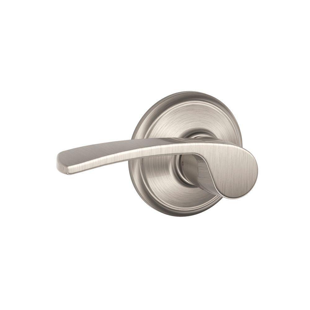 The Schlage Merano Satin Nickel Passage Door Lever is perfect for use on hall and closet doors where locking is not needed. The Merano lever has a graceful curve that makes it as delicate as it is chic - especially when wrapped in our versatile Satin Nickel finish. The universal design of this passage door lever set allows it to be mounted to left or right swing doors. Plus, it’s been designed and tested with strength and durability in mind.