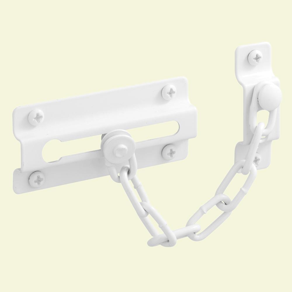 This chain door guard is constructed from steel and comes finished in white. It secures your door while allowing room for viewing or ventilation. Comes complete with fasteners for a quick and easy installation.