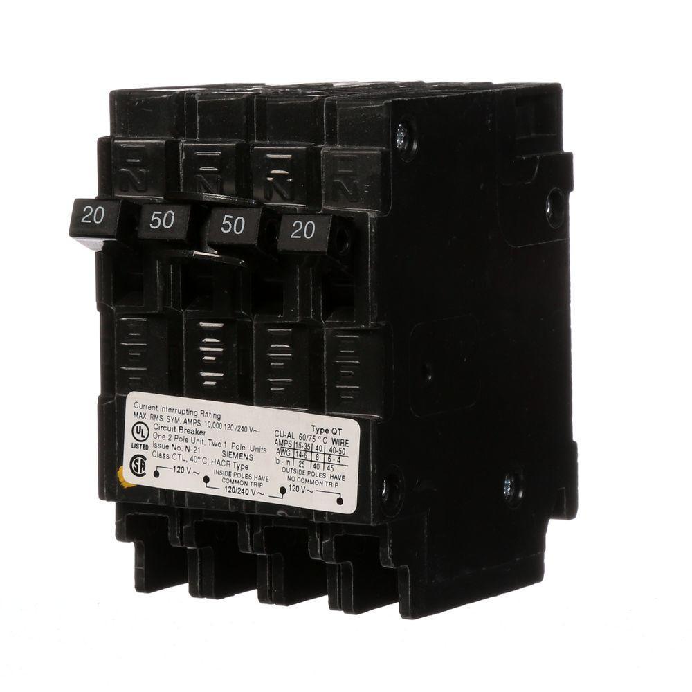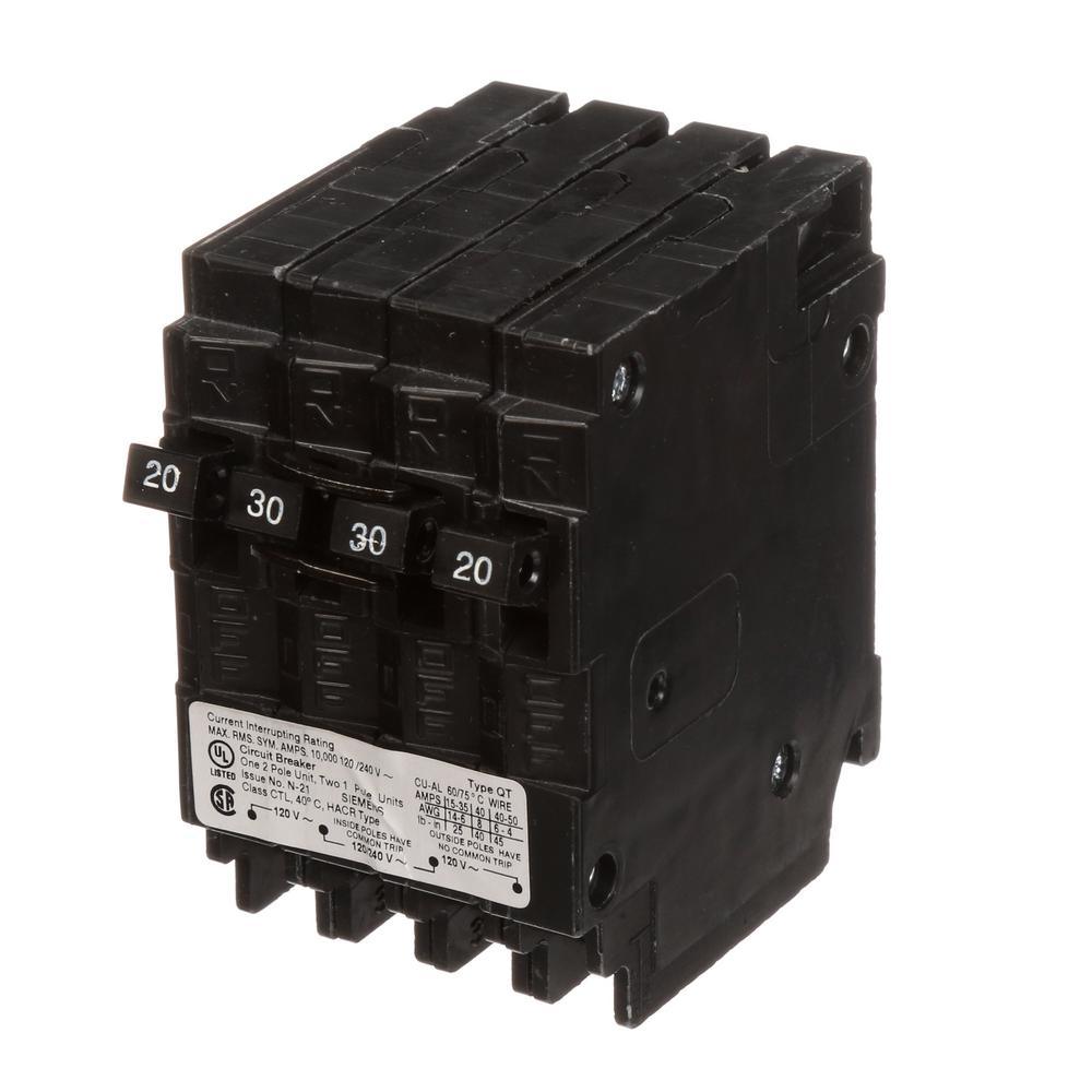 One 20 Amp common-trip double-pole and two 30 Amp single poles