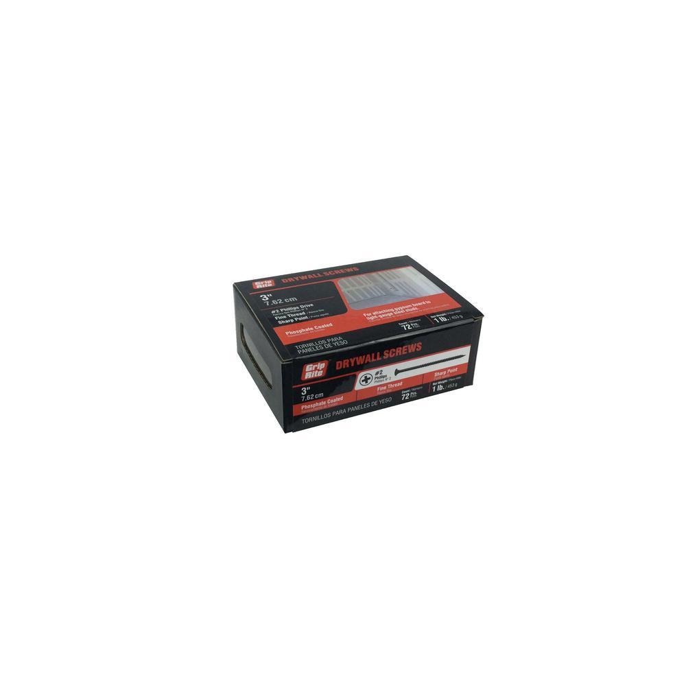 Grip-Rite fine thread drywall screws securely fasten gypsum board to light-gauge metal studs. The #2 Phillips bugle head and sharp point drive smoothly, while the black phosphate coating provides a clean finish and enhanced grip for indoor applications.