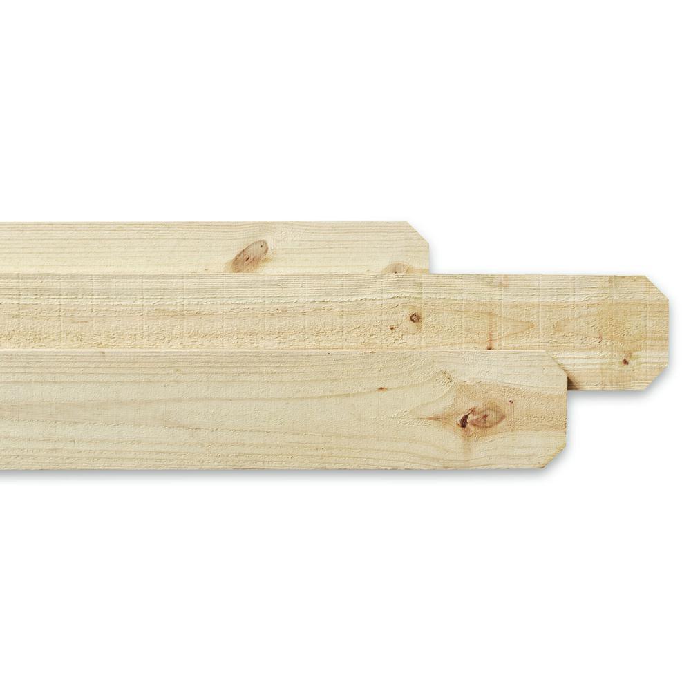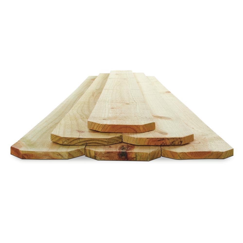 The 6 ft. x 5-1/2 in. x 5/8 in. Pine Dog-Ear Picket is made from pine for durable, long-lasting performance. This all-wood picket is 6 ft. long. It has a classic dog-ear pattern that can add charm to almost any outdoor space. It is paintable and stainable to match with your exterior decor. You can use it for outdoor applications including picket fences and gardens.