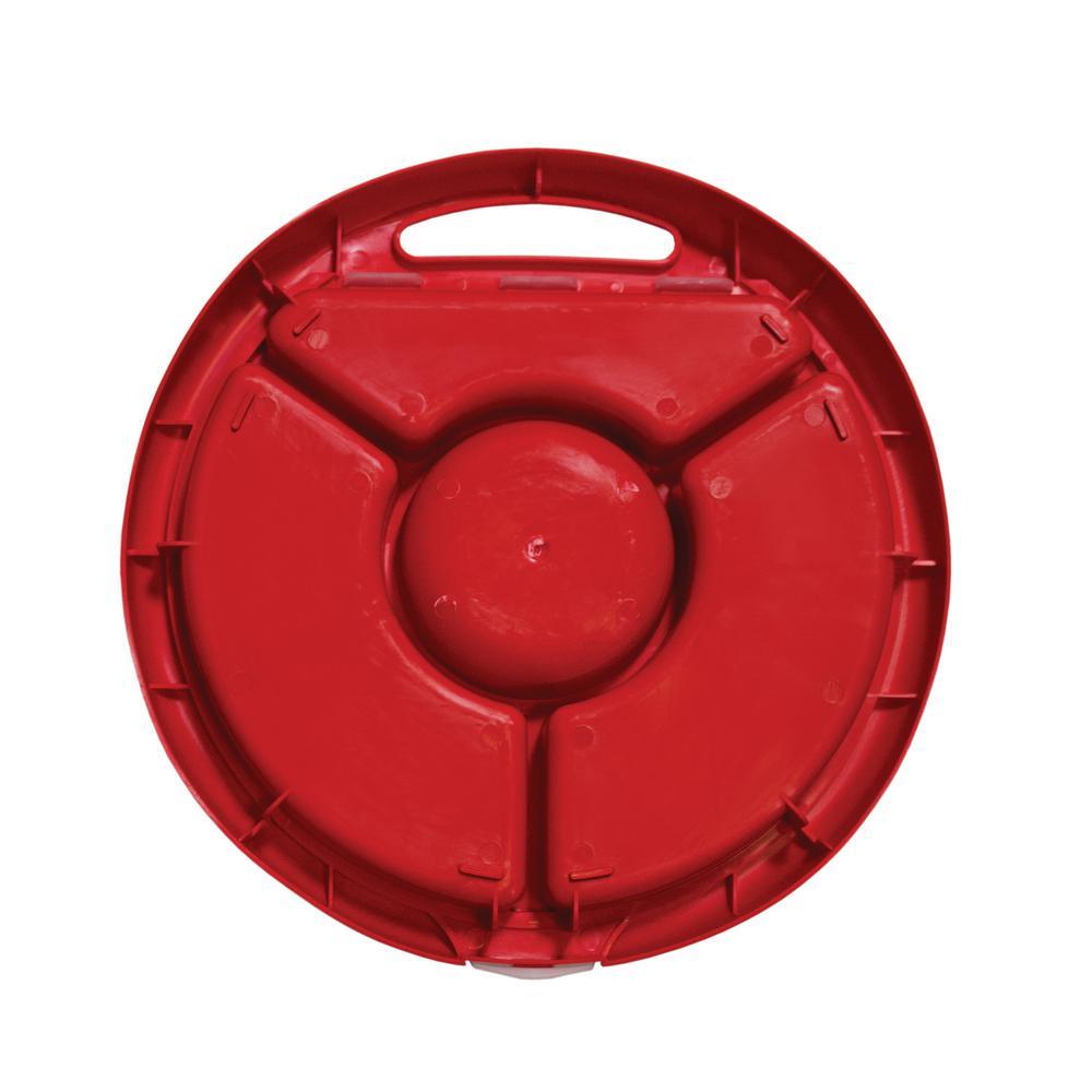 Simple and easy to use, the Bucket Seat attaches to the top of your 5 Gal. bucket while providing small parts organization. The Bucket Seat functions as a lid, a place to sit and a small parts organizer. Features 6-compartments interior and a locking lid.