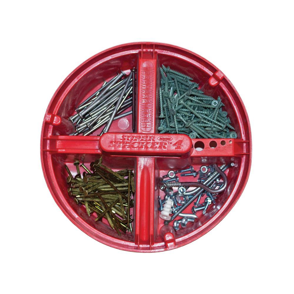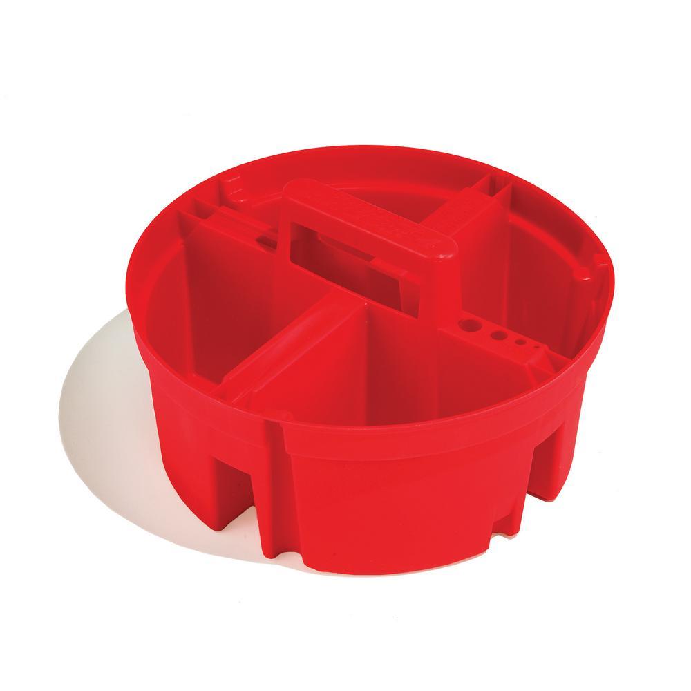 The Bucket Super Stacker is the upgraded version of the original Bucket Stacker, and includes all of those features, but is 1.5 in. taller to hold a little more. It is a molded plastic small parts organizer tray, in red, designed to stack inside of most 5 gallon buckets. Equipped with 4 compartments, as well as a molded center handle, you can stack up to 3 Bucket Super Stackers in one 5 gallon bucket, or use them as a mobile small parts tray. The Bucket Super Stacker holds not only small parts and tools, but also such things as sewing accessories, craft supplies, office supplies and small gadgets.