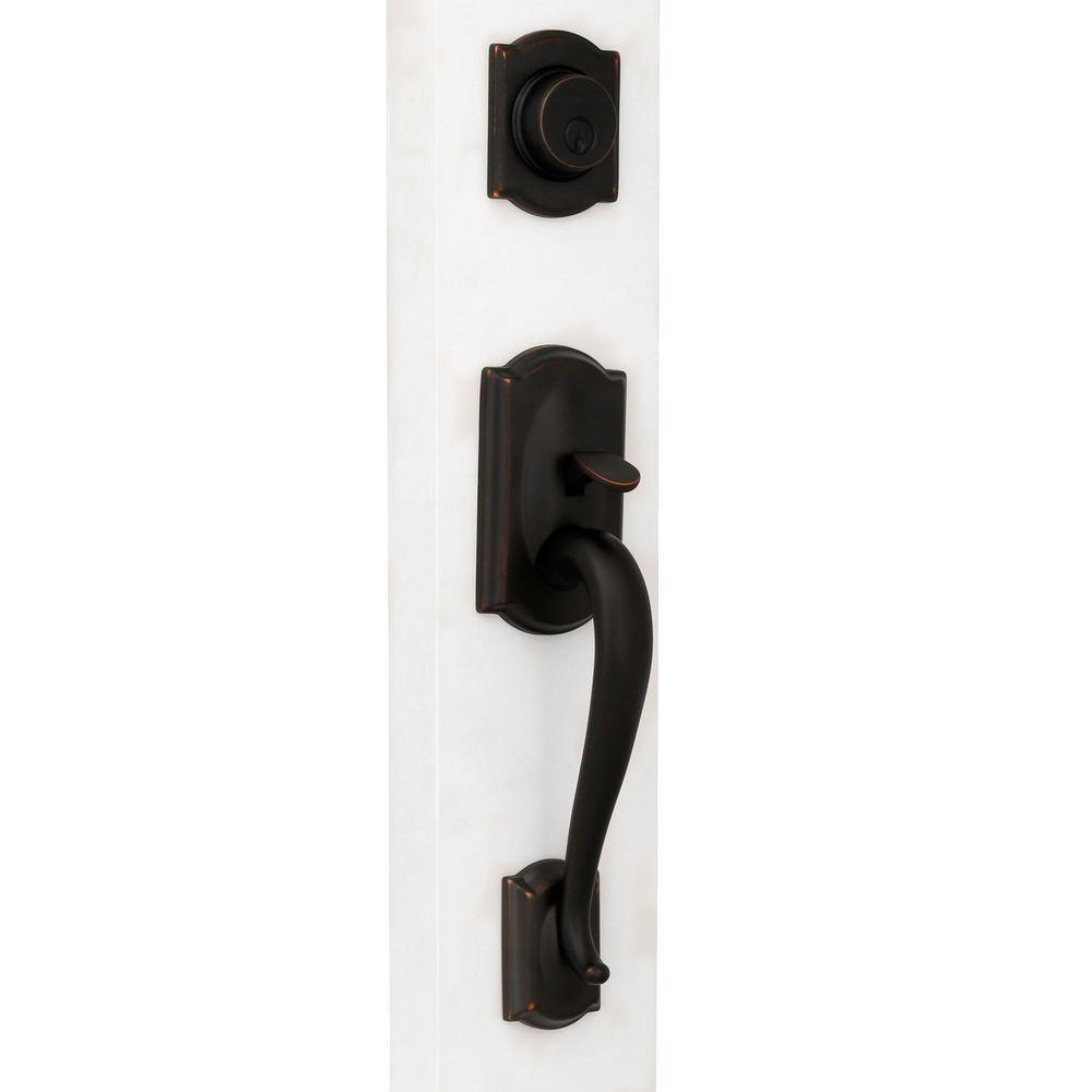 The Schlage Camelot Aged Bronze Left Handed Accent Lever Dummy Door Handleset is perfect for use as a decorative door pull on a pair of non-latching doors. The interior Accent lever is widely popular for its elegant wave-like design that effortlessly matches a room's style without overshadowing it. The Camelot trim's scalloped architectural details make any room charming and approachable. The Aged Bronze finish is inspired by traditional design, featuring warm, copper tones that break through its darker, aged exterior. Plus, it's been designed and tested with strength and durability in mind.