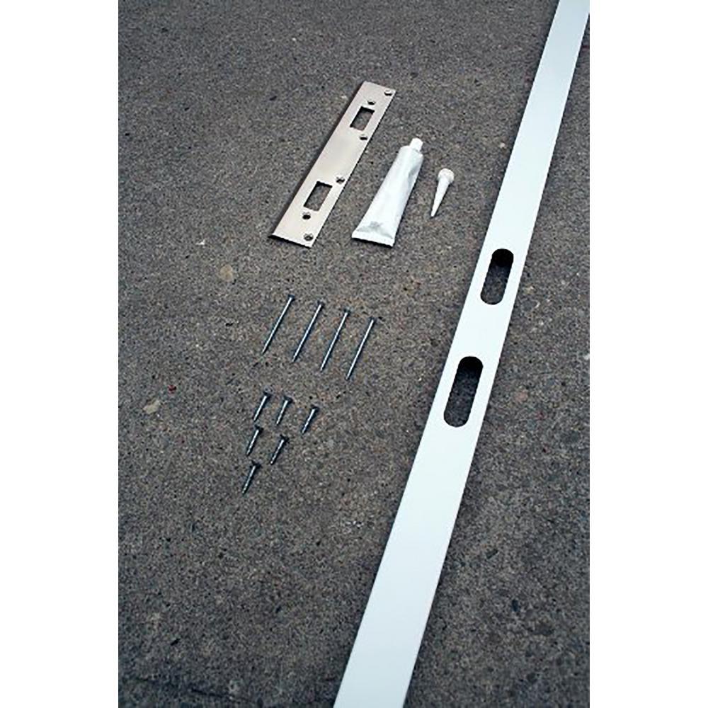 System package includes; 79 in. paint grade white metal channel, 12 in. nickel strike plate, clear silicone and all necessary screws