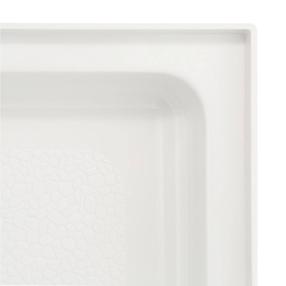 A durable Veritek solid-surface shower base designed for alcove installations. Its non-porous, slip-resistant pebbled surface resists mold and mildew and cleans easily with common household cleaners.