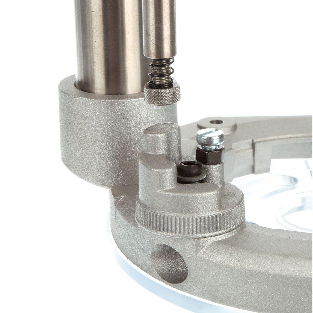 Clear, Lexan sub-base provides enhanced base durability, bit visibility, and accepts standard template guide bushings