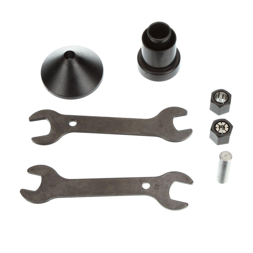 Includes motor pack, fixed base, plunge base, 1/4 in. and 1/2 in. collets, 2 wrenches, sub-base concentricity gauge, vacuum adaptor and case