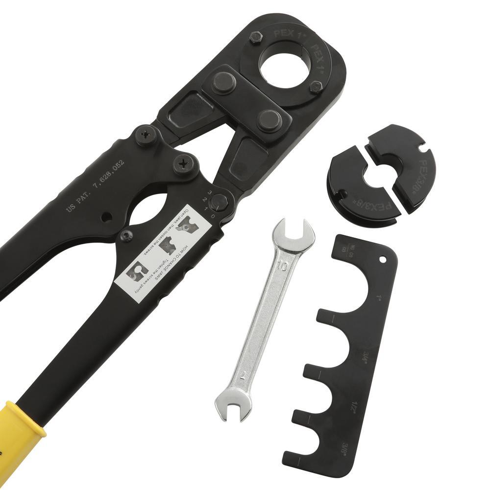 Versatile Sizing: Interchangeable jaws cover 3/8 in., 1/2 in., 3/4 in., and 1 in. PEX crimp rings