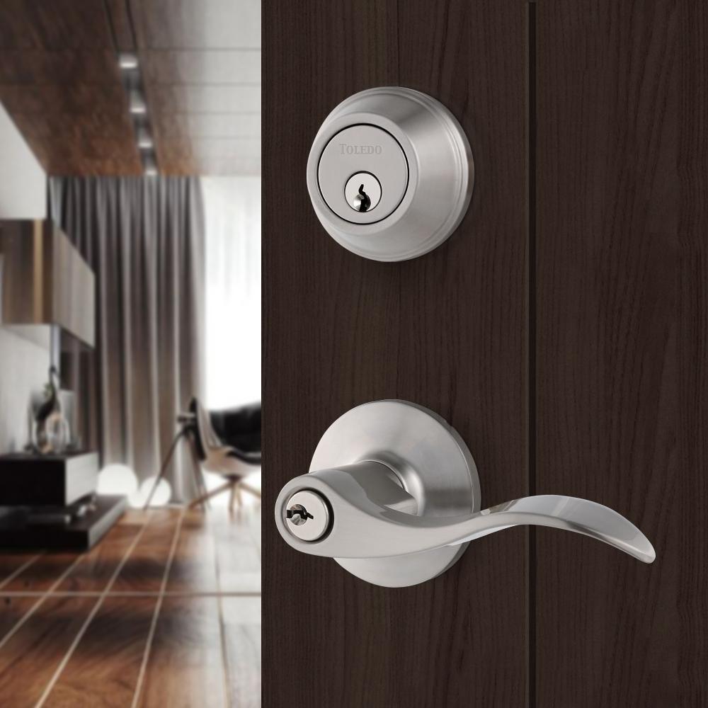Double Cylinder Satin Nickel Lever Combo Set