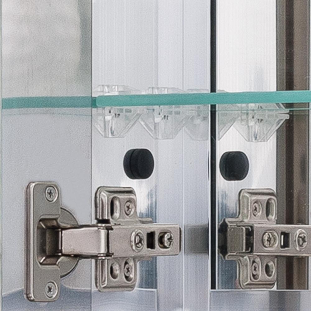 This mirrored cabinet features a Tri-view beveled frameless door that can be installed with hinge. Inside, three glass shelves that hold all your toiletries and bath items. Rust-free aluminum construction with mirror back ensures years of use. A side kit is included for recess or surface mount