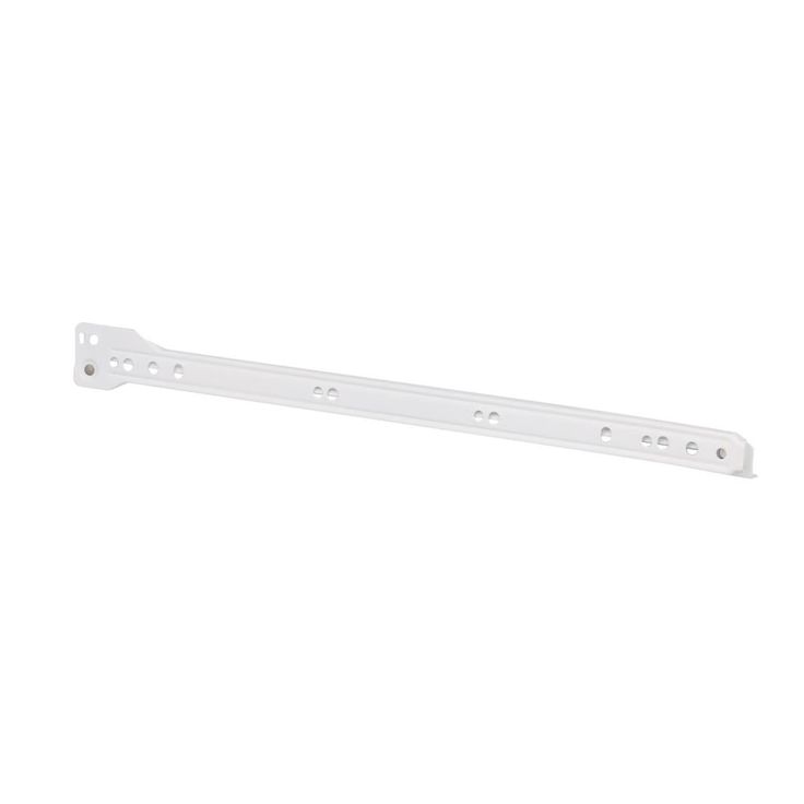 This is a pair of white powder coated steel drawer slides that are used in 16 in. deep drawer cabinets.