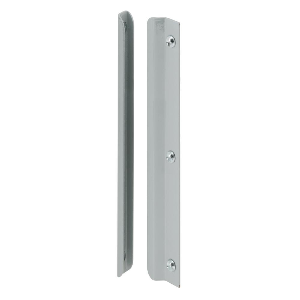 This latch guard is constructed from steel and comes finished in gray. It is designed to protect your door from forced entry. This style latch guard is used on in swinging doors.