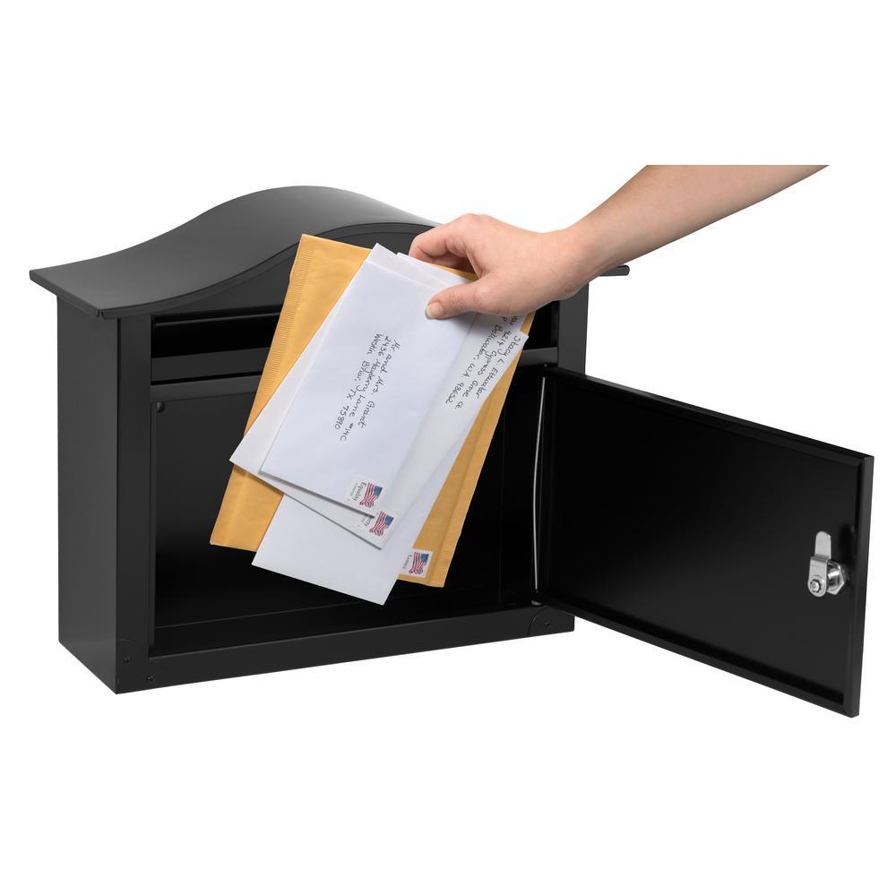 The Saratoga Wall-Mount Lockable Mailbox comes with mounting hardware and instructions for convenient installation. This mailbox features an oversized mail slot and a deep storage compartment that is great for magazines and other large pieces of mail. Its stainless-steel cam lock helps secure your mail for privacy purposes.