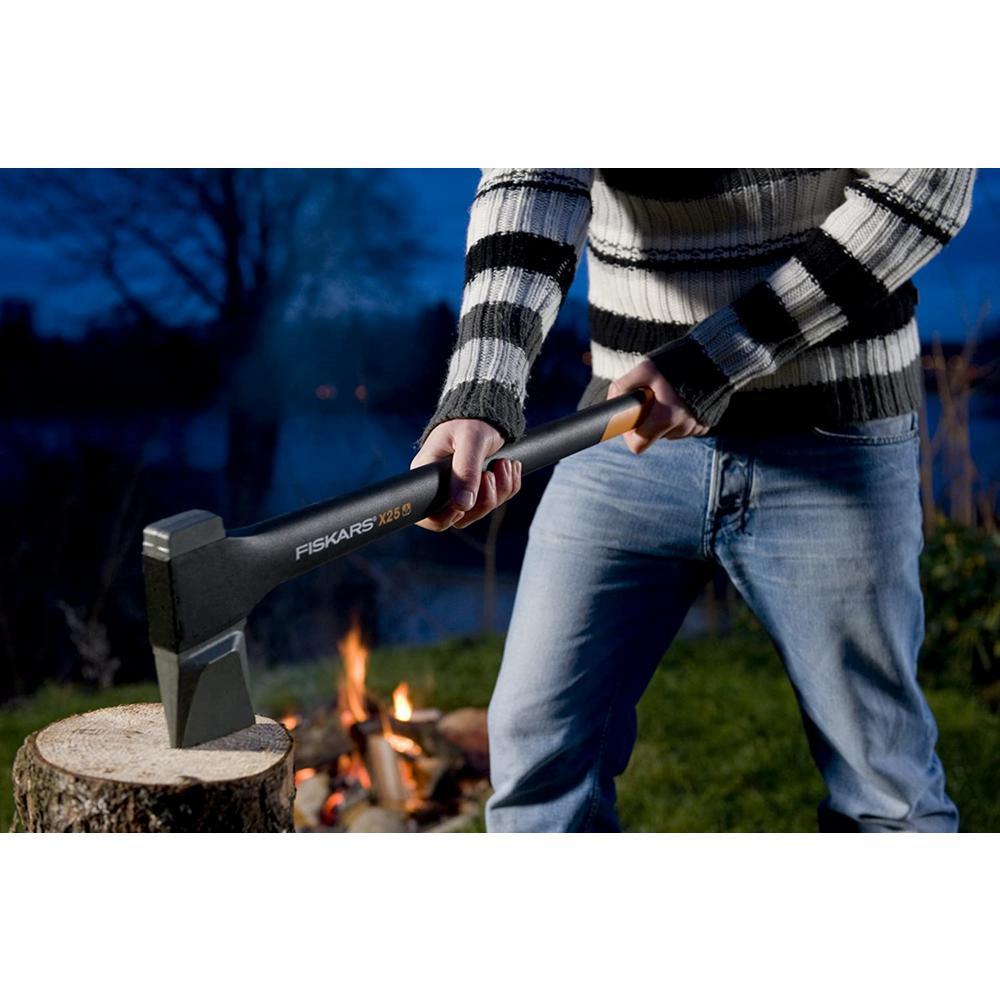 The X25 Splitting Axe is a great choice for anyone who needs to split medium- to large-sized logs quickly. Like every X-Series Hatchet or Axe, the X25 combines perfected weight distribution, advanced blade geometry, an ultra-sharp edge and virtually unbreakable design to maximize your performance. This combination of features allows the blade to disperse wood more effectively, offering more 1-strike splits with each swing. Since you can split wood more easily with the X25, each job requires less time, less effort and less hand strain. Lifetime warranty.