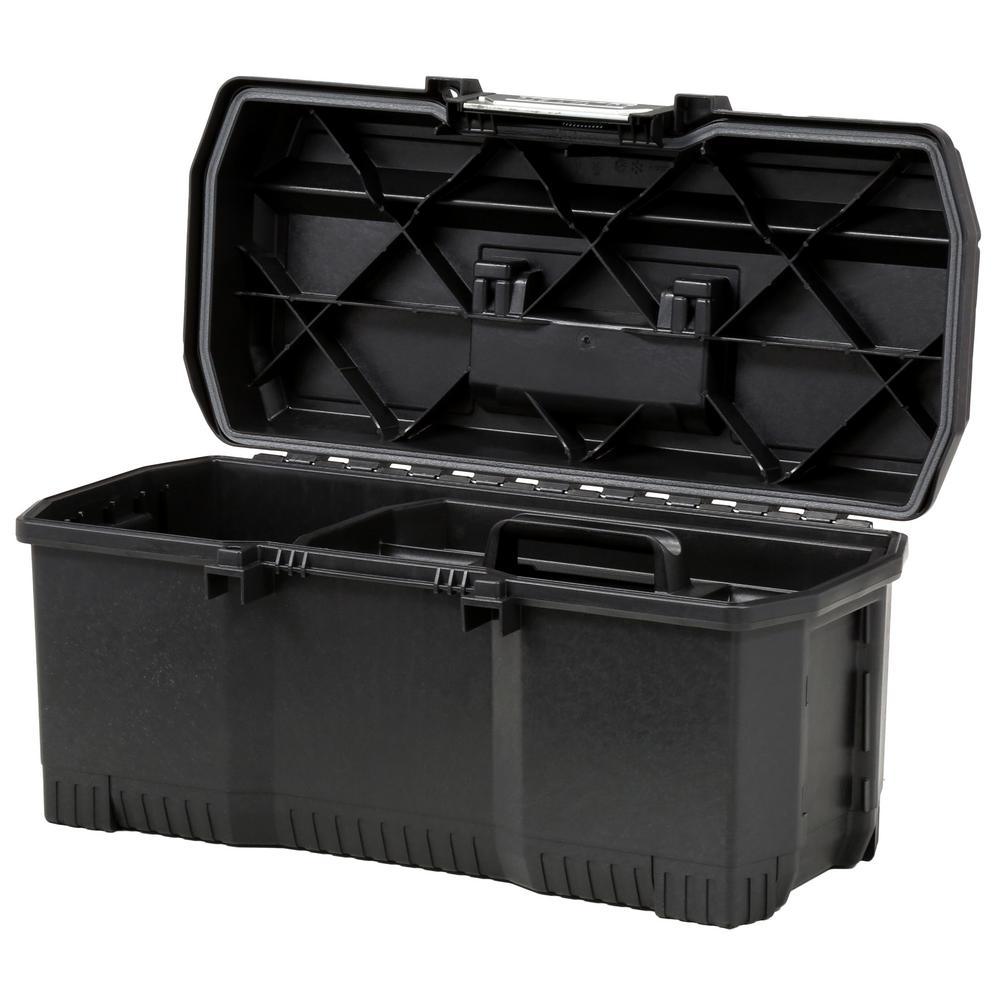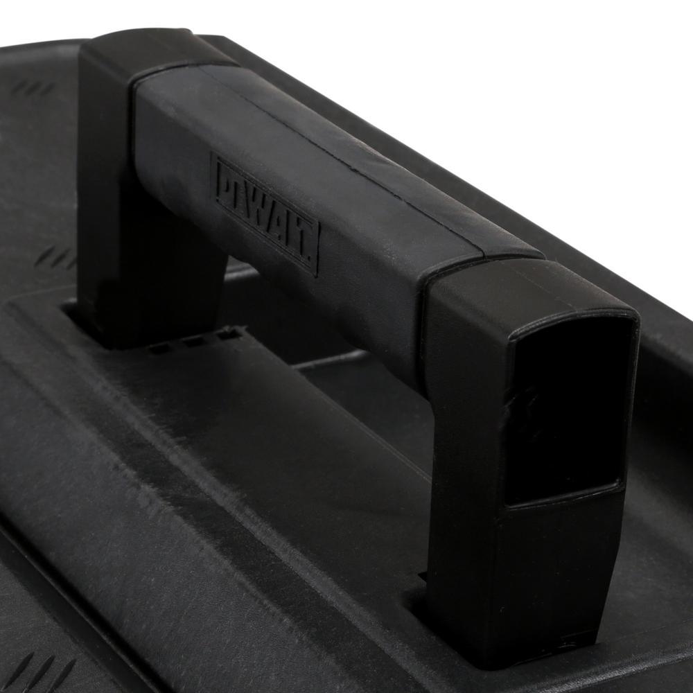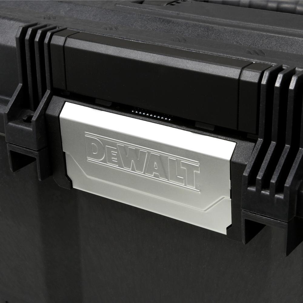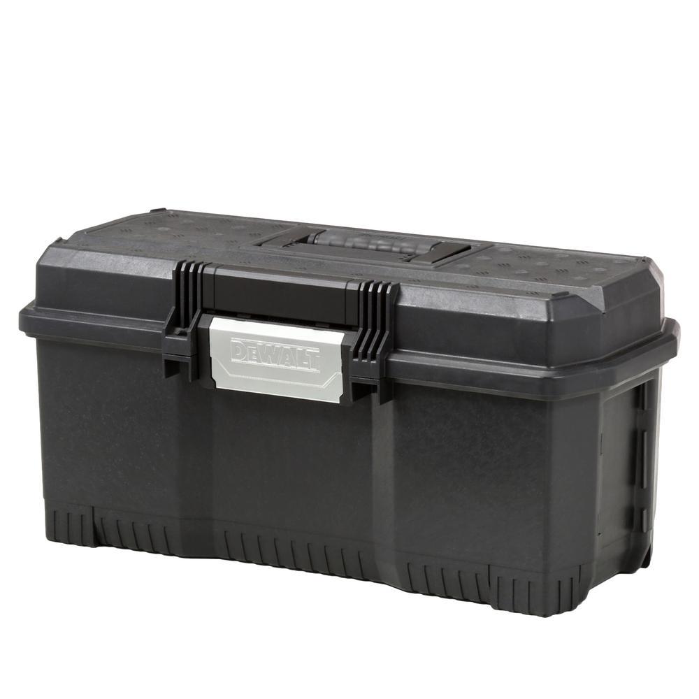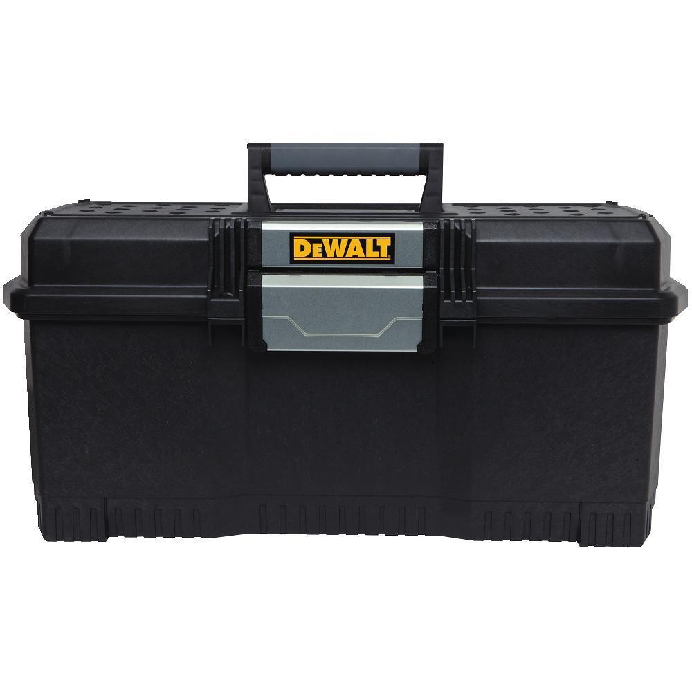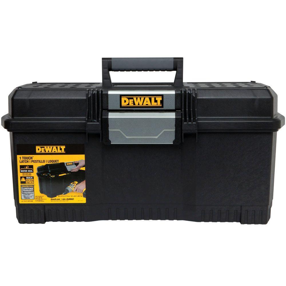 The DEWALT 24 in. 1-Touch Tool Box holds up to 3,064 cu. in. and up to 55 lbs. for storage of home or work tools. The box has resin construction with a water seal to help provide water resistance. This unit features a large storage compartment that is ideal for carrying power tools, hand tools and medium-to-large items and it features a portable 1/2 tray to accommodate large objects.