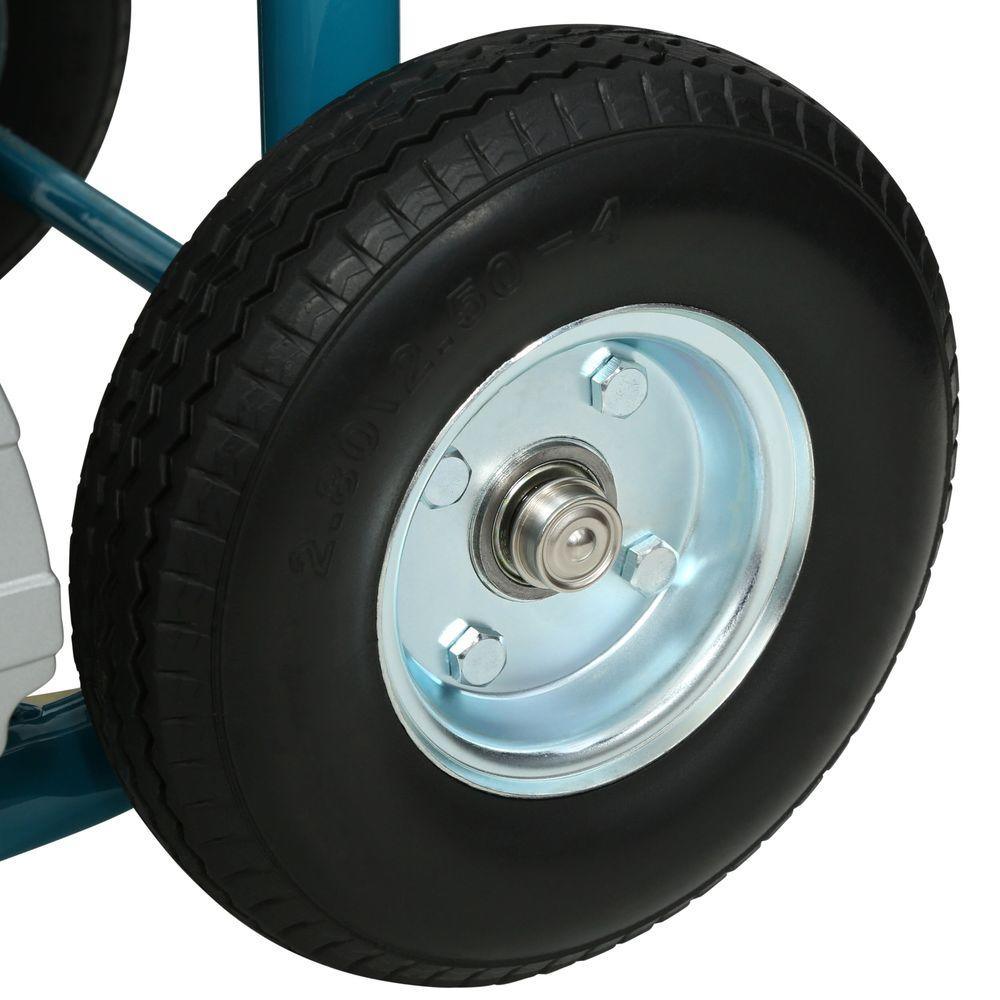 • Air hose wrap stores 50 ft. of 3/8 in. air hose with handle folded or upright