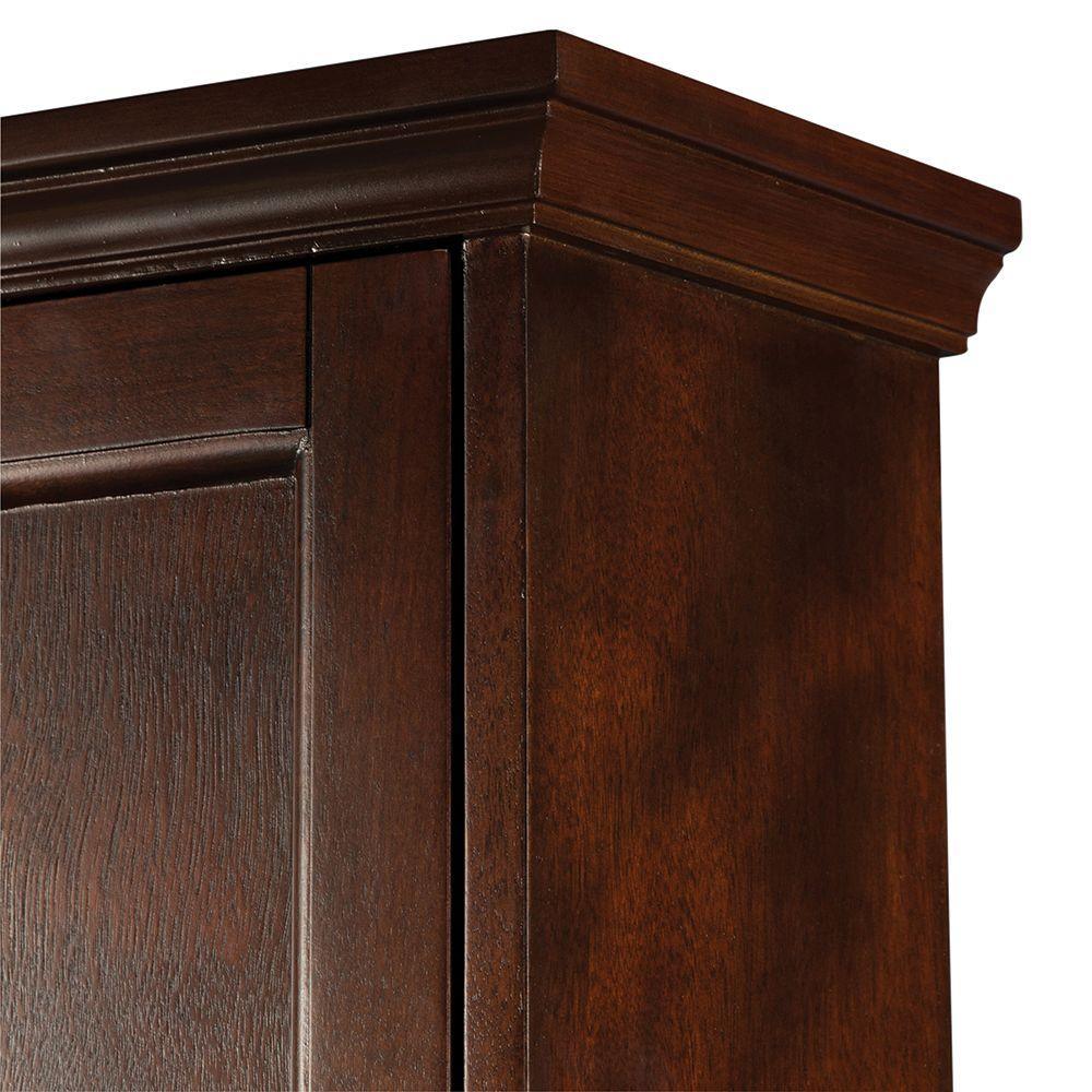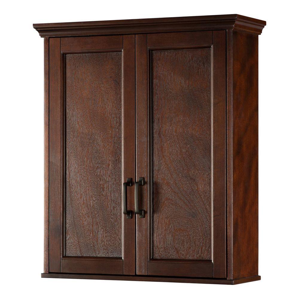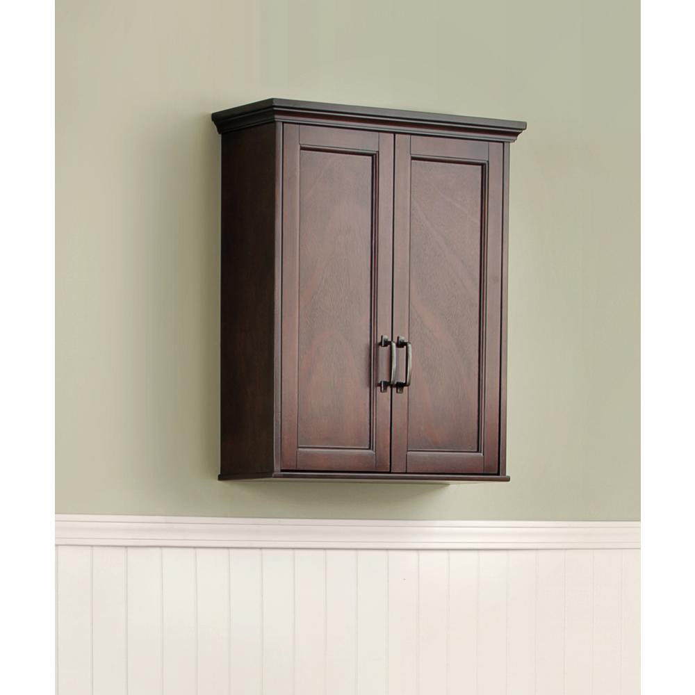 Exquisite design, rich mahogany finish and smart storage features make the Ashburn collection by Foremost a true design wonder. The Wall Cabinet in Mahogany provides versatile storage space with 2 adjustable shelves offering enclosed storage behind 2 doors. Like other Ashburn pieces, this cabinet is accented with intricate top mouldings and oil-rubbed hardware for a stunning designer touch, complemented by sleek lines for a clean, elegant appearance.
