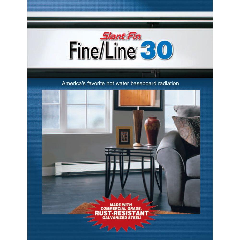 The Slant/Fin Fine/Line 30 7 ft. Fully Assembled Baseboard and Element is made of rust-resistant galvanized steel. The durable, baked-enamel finish can be used as is or serves as a great base for paint or wallpaper. Slant/Fin baseboard can be installed flush to the wall or recessed for a more concealed look.