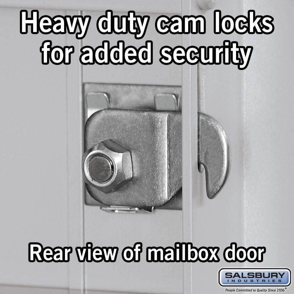 Q: Does it come with locks and keys? A: Each door includes a heavy-duty cam lock and 3 keys; the USPS installs the master arrow lock for carrier access.
