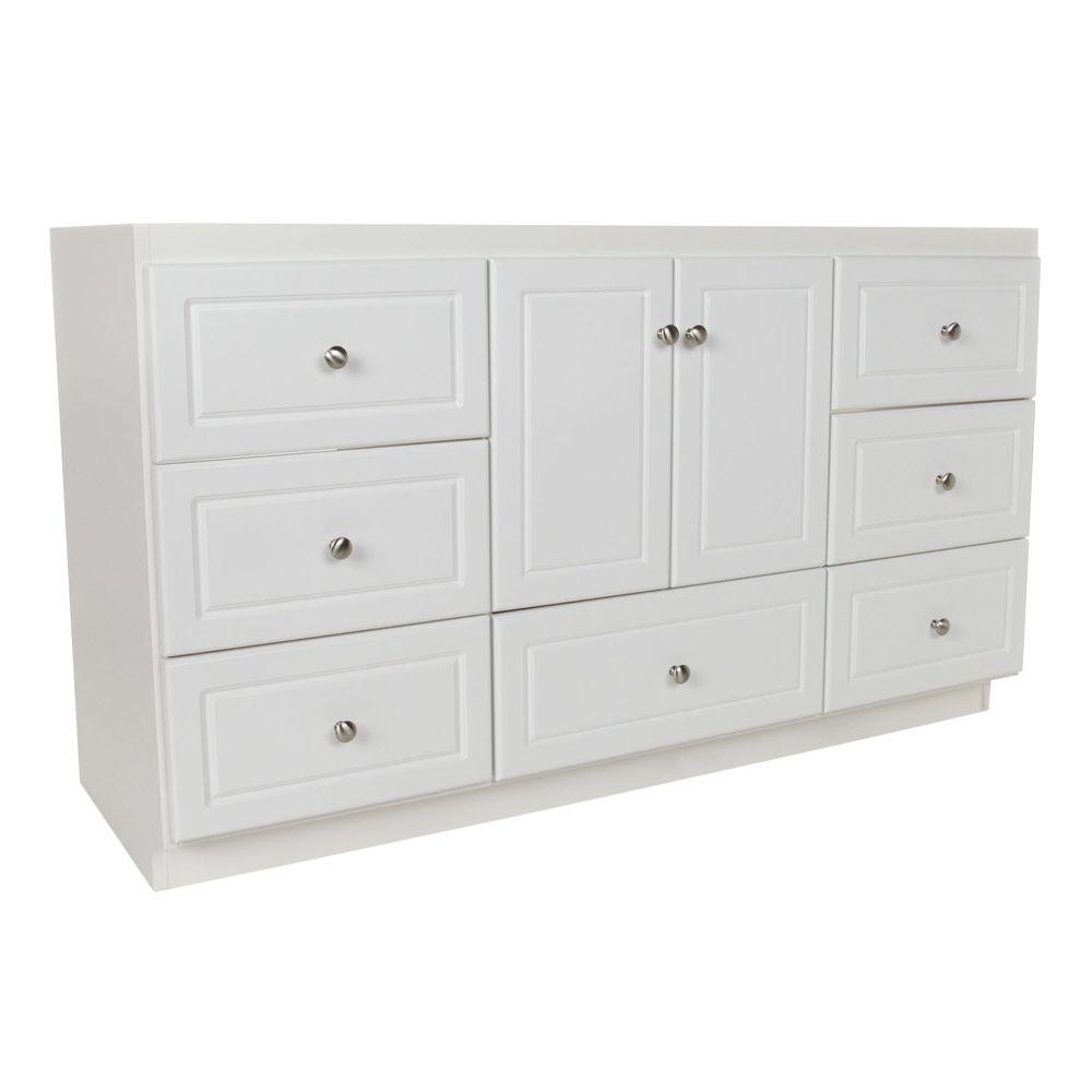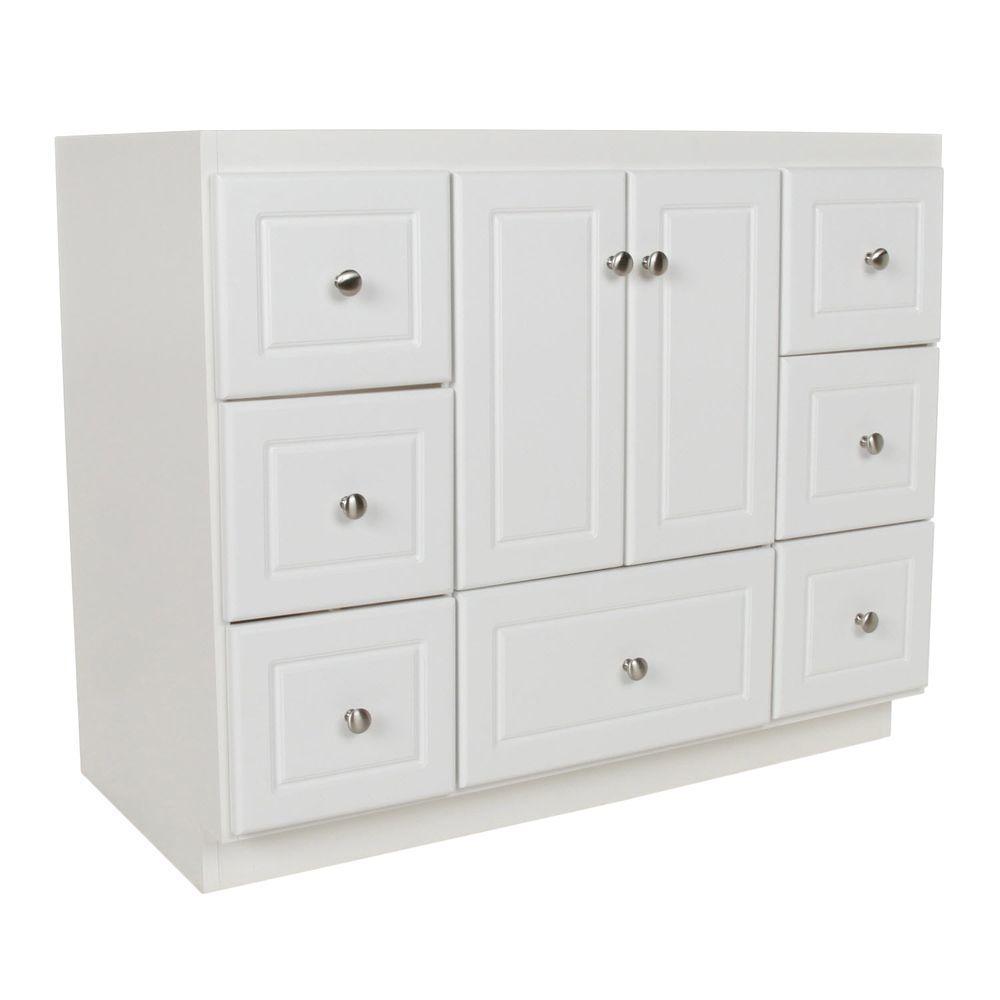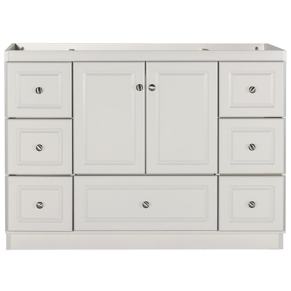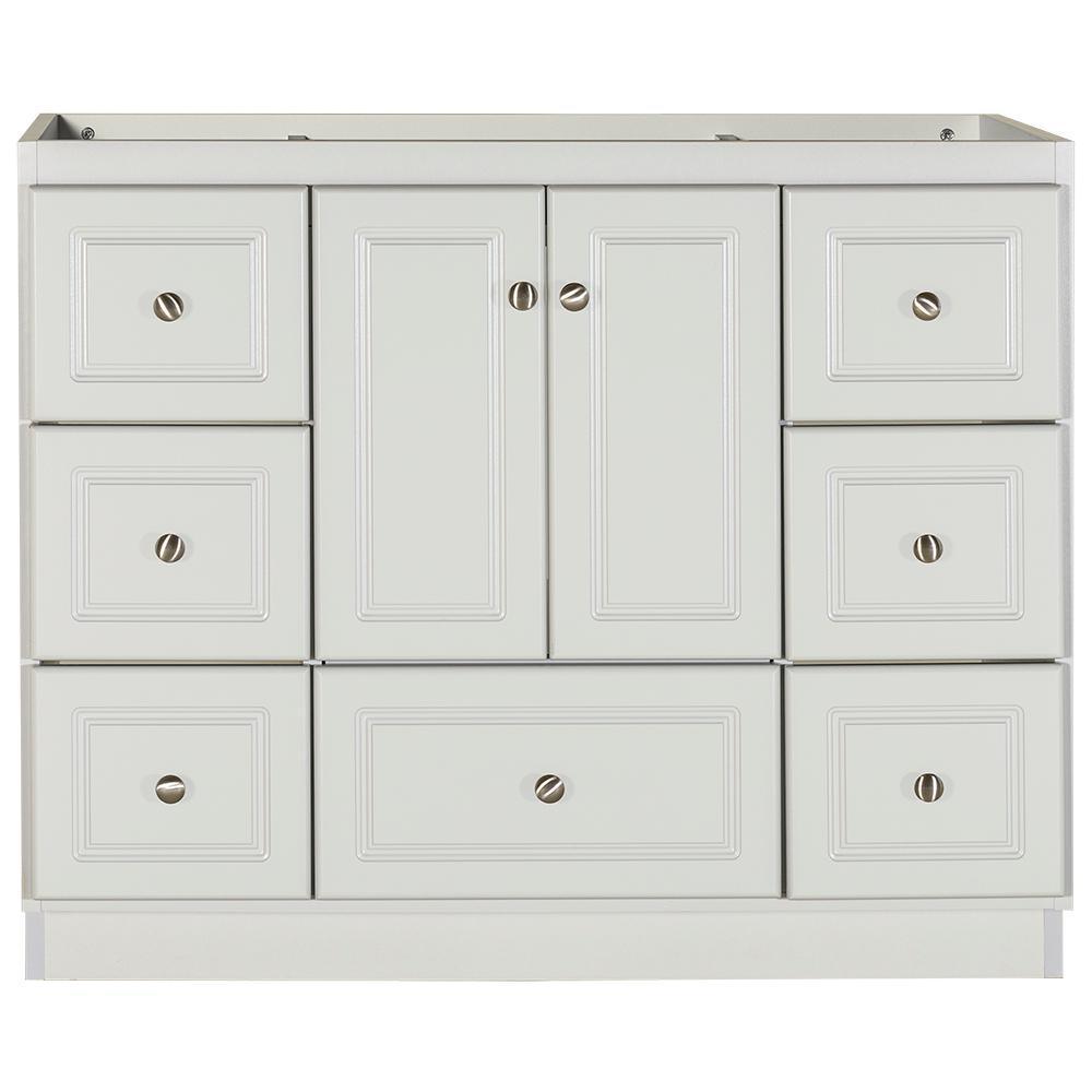 Accommodates a 43 in. W x 22 in. D top with center basin (top and faucets not included)