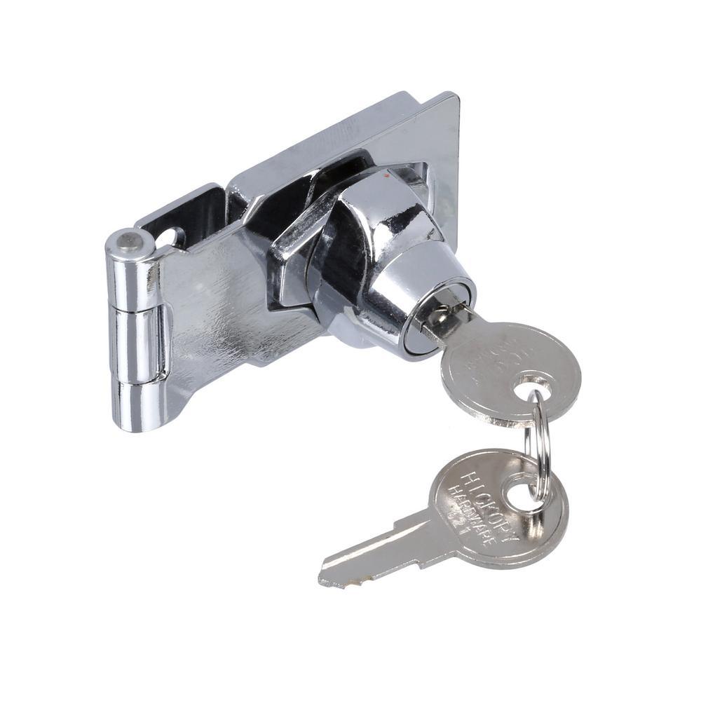 This is a keyed hasp lock from the First Watch Security brand. These locks are best for barns, wooden gates, or any other light security door or drawer needs. The keyed hasp lock will help keep unwanted users out.