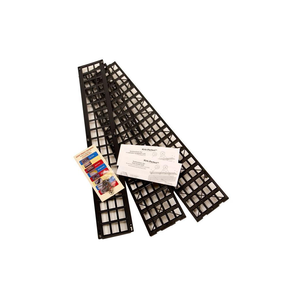 The Kirb-Perfect shower curb is a stay-in-place plastic form for building perfect shower curbs. Kirb-Perfect is designed to be used with the pan liner of your choice. It can be used with or without a 2x4 wood curb. With molded in dovetail connecting lugs, this curb can be used for multiple length installations. Each piece of the Kirb-Perfect Shower Curb is easily cut with a hacksaw, PVC cutters or angle grinder. Supplied with two (1 1/4 in. length) and eight (3/4 in. length) stainless steel shelf tapping screws and illustrated installation instructions. Kirb-Perfect is 4 9/16 in. wide x 30 in. long and 5 1/2 in. height.