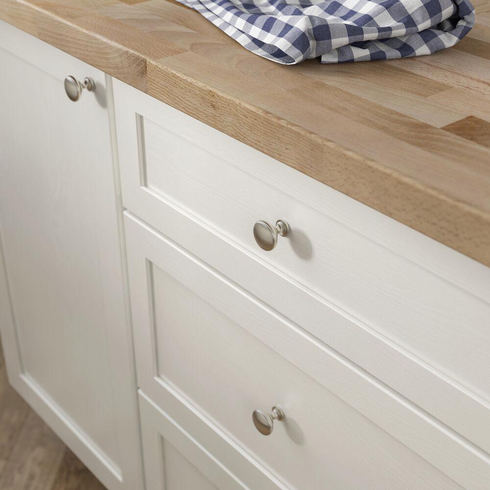 These Liberty 1-1/4 in. Satin Nickel Round Knobs (10-Pack) adds a refined style to your cabinetry. The smooth satin finish and classic design complement a variety of decor. Ideal for both kitchens and bathrooms and installation hardware is included for ease.