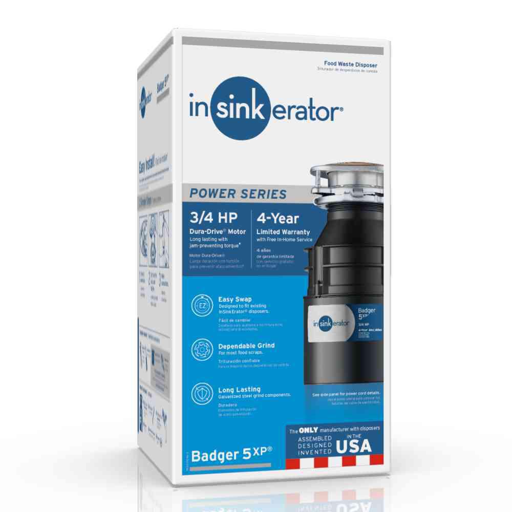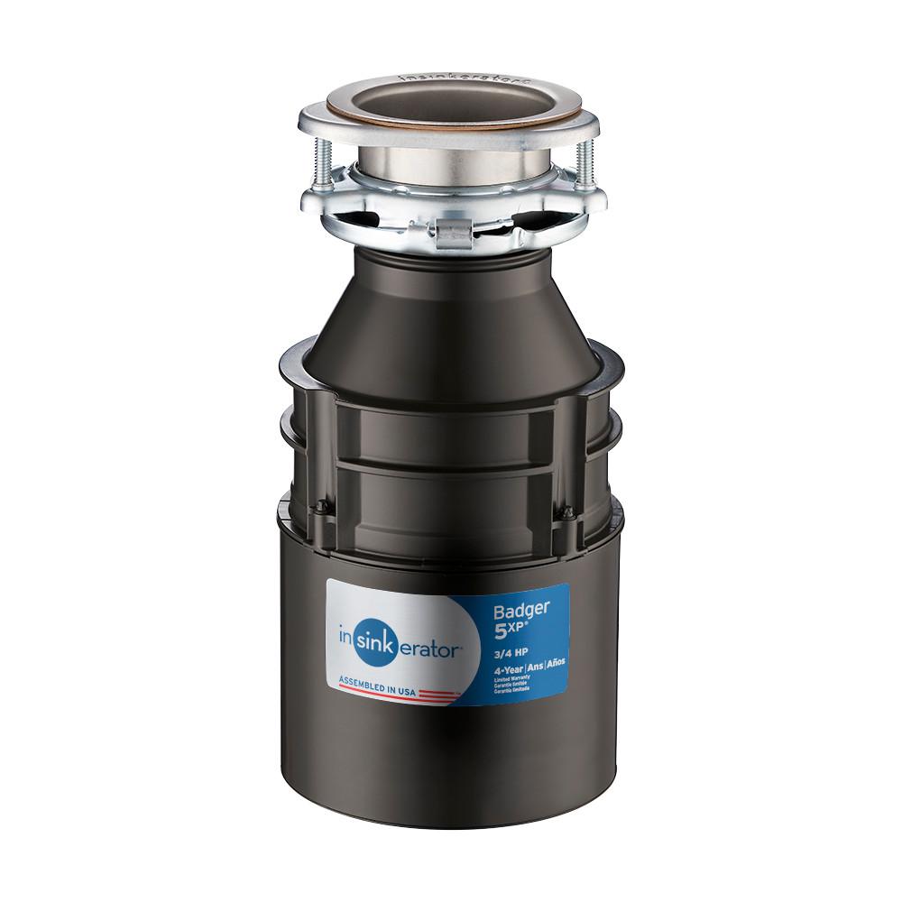 Badger food waste disposers are a reliable and functional choice when affordability is the prime concern. Badger 5XP features a 3/4 horsepower heavy-duty quiet Dura-Drive induction motor, rugged galvanized steel construction for disposer durability, and a space-saving compact design. To top it off, Badger 5XP offers a 4-year We Come To You In-Home Service Warranty.