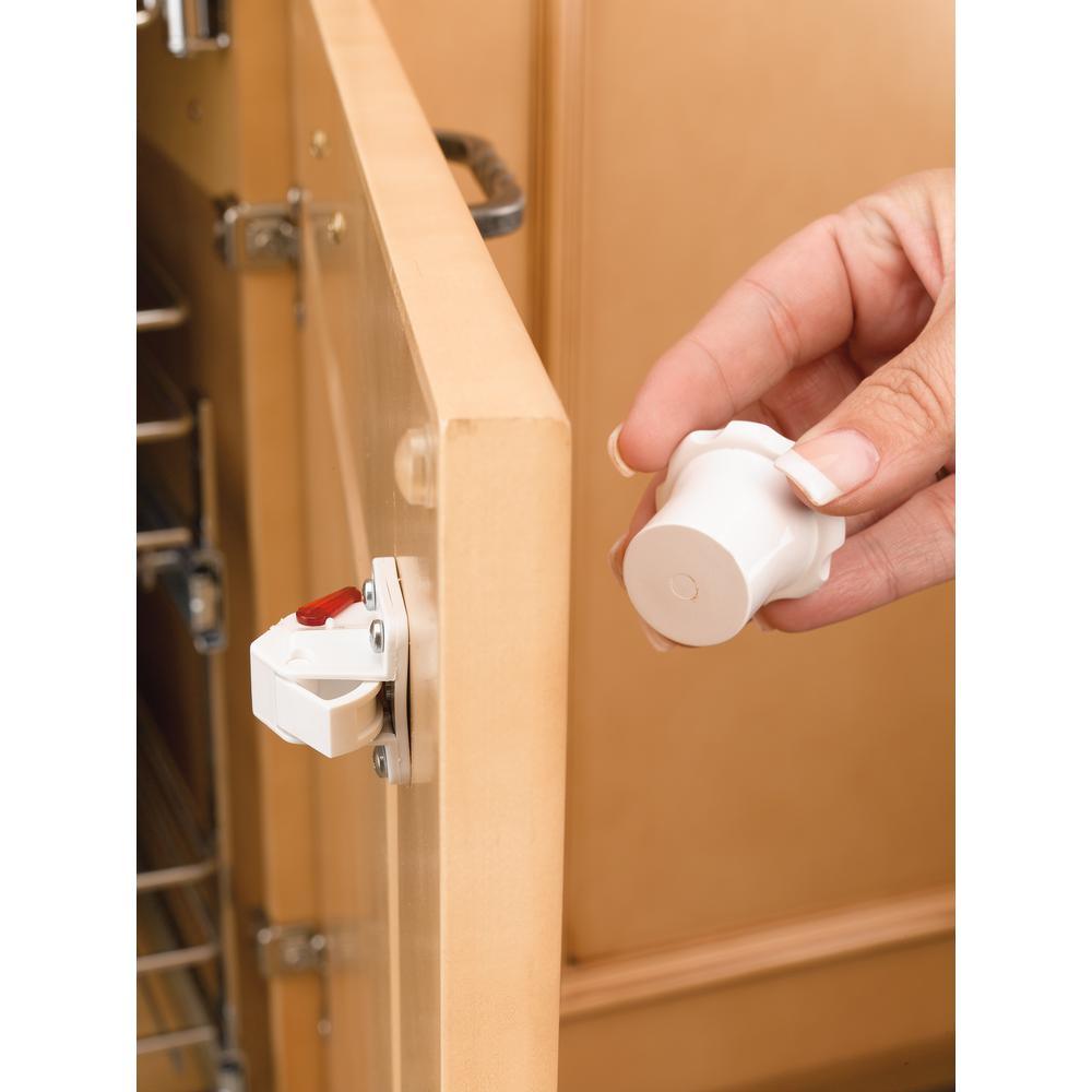 Introducing the revolutionary peace of mind accessory for any parent or grandparent, the Rev-A-Lock. This security device is one-of-a-kind with powerful magnetic locks. The lock assembly can attach to wood, glass, metal, and particleboard cabinets for a guaranteed safeguard from curious little hands. To open the cabinet, simply hold the magnetic key against the cabinet door to disengage the lock. The RL Series also features an unlocking device that allows a disabling of the lock so cabinets can be opened without the key.