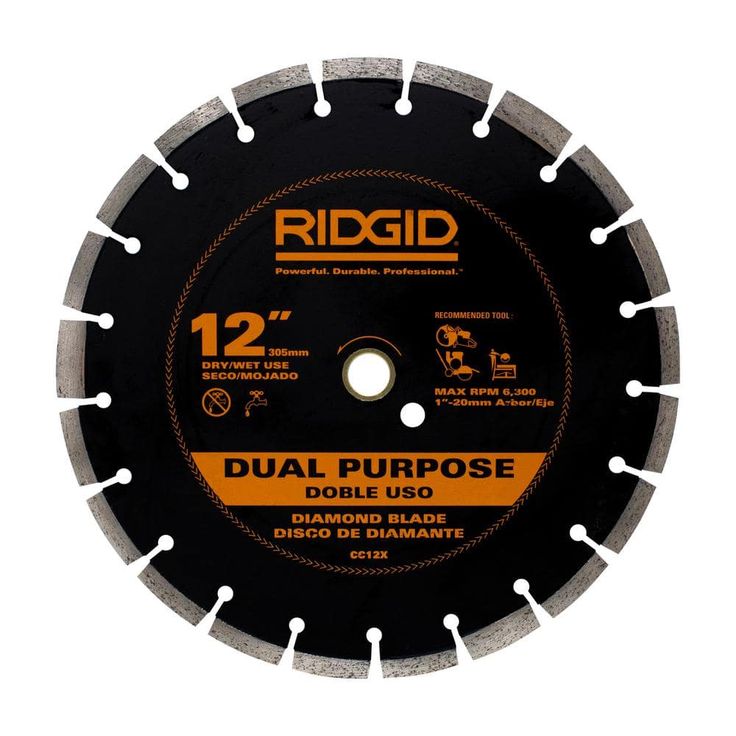 RIDGID Dual Purpose Diamond Blades are manufactured with the contractor in mind. These blades are engineered to provide superior cutting speed on a wider variety of materials. The laser welded segments cut agressively with outstanding performance on both hard and abrasive masonry, concrete, asphalt, hard brick, pavers, and stone. The abrasive resistant undercut segments protect the core against damage from the harshest of materials. Use this blade on 12 in. masonry saws and high-speed power saws, and low-horse power walk-behind saws with 1 in. arbor, 20 mm adapter included.