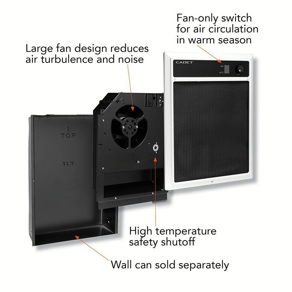 Whether you need to heat a large open room, or simply circulate the air, the NLW heater is a proven and reliable choice for your medium to larger rooms, or entryways. Equipped with a unique fan to reduce air turbulence, this heater provides quiet operation, while delivering heat gently and quickly to warm your room. Use the fan independently during warmer months to circulate the air. Purchase wall can separately for new installation.