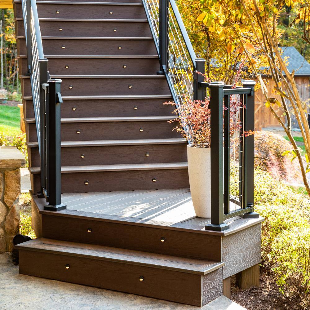 Brighten steps and risers with Trex DeckLighting LED Riser Lights. These recessed, powder-coated aluminum fixtures deliver warm white illumination for safer, stylish outdoor stairs and decks.