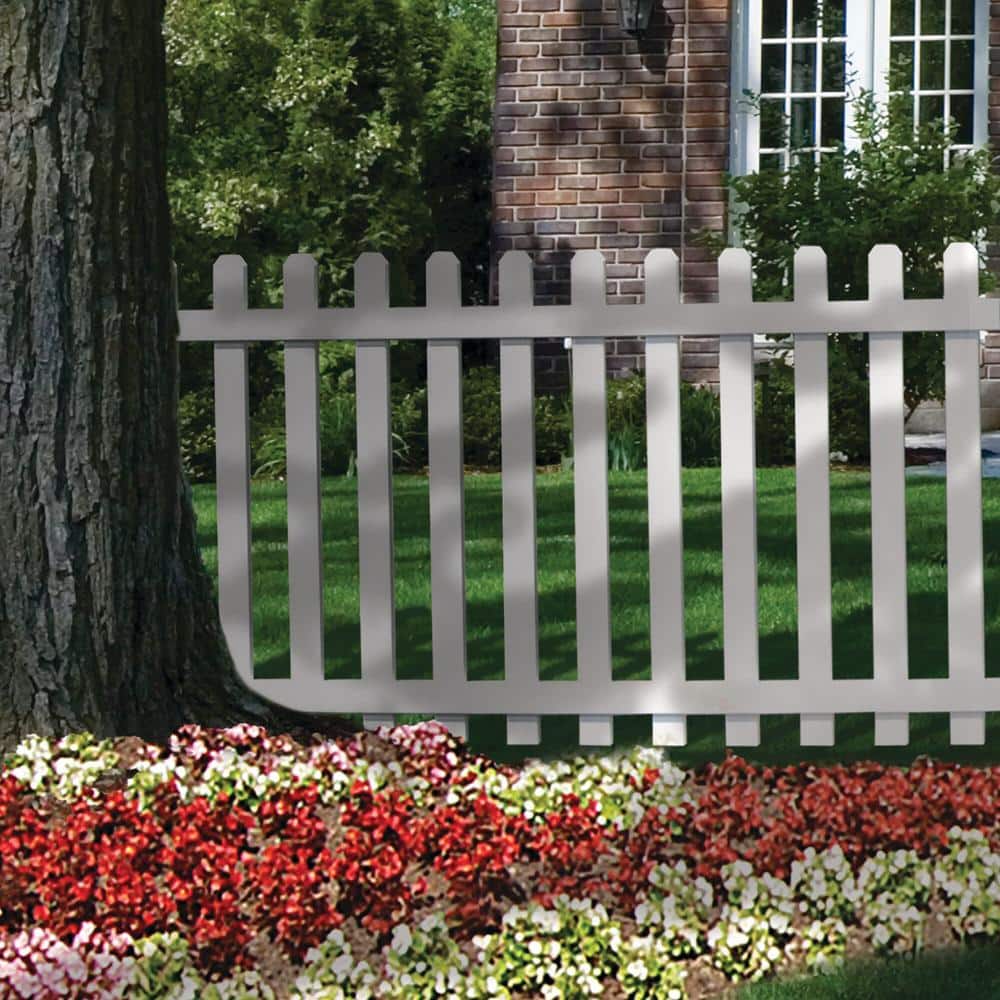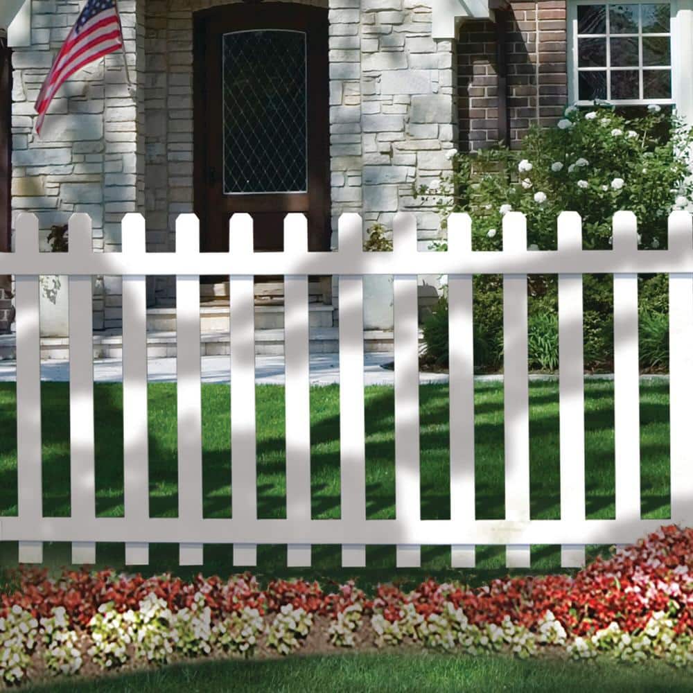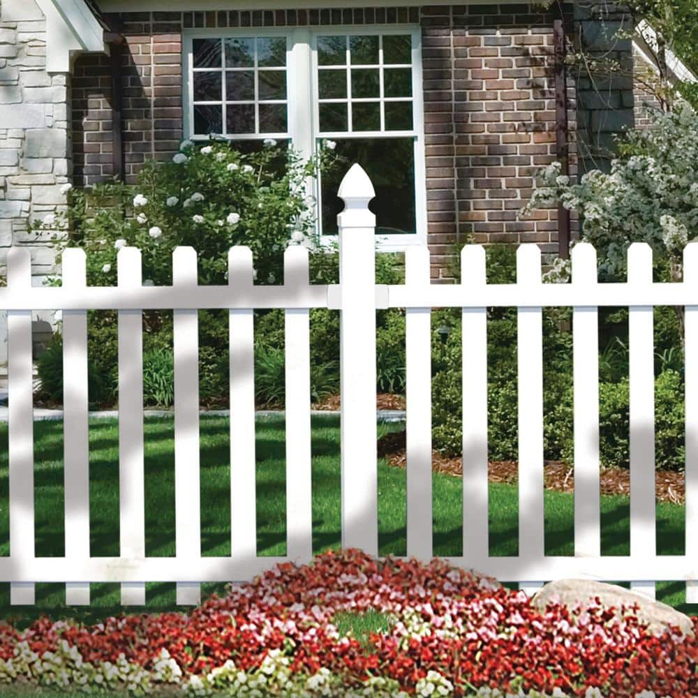 Veranda Glendale 4 ft. H x 8 ft. W White Vinyl Spaced Picket Fence Panel with Pointed Pickets