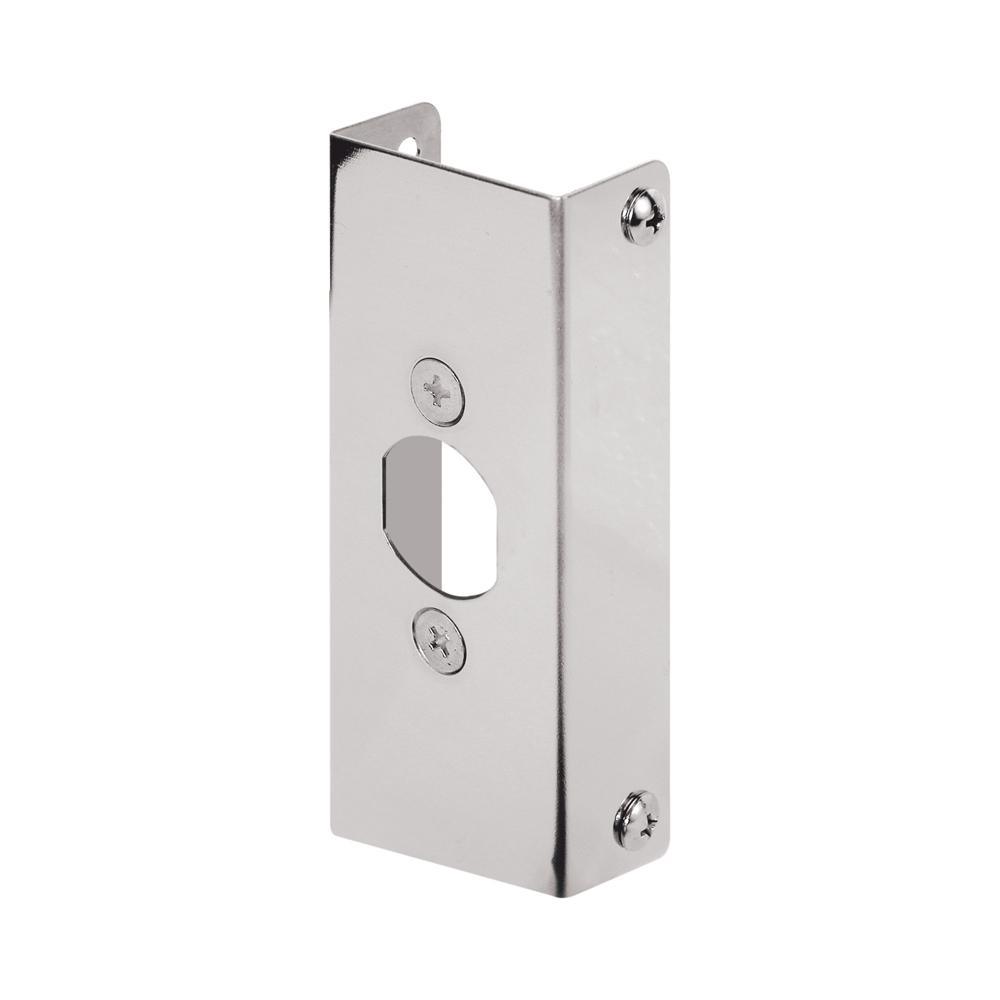 This door edge reinforcer reinforces and repairs door edge. It assists in preventing forced entry and is used on wood or metal doors with mortise or drive-in latches. It accommodates lockset or deadbolt with any backset and its easy to install.