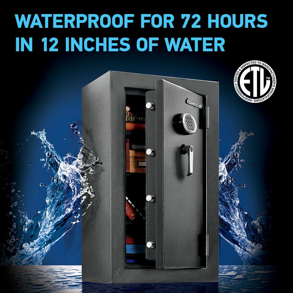 Waterproof safe is ETL Verified for 72 hours of protection in water up to 12 inches deep offering peace of mind in the event of a flood