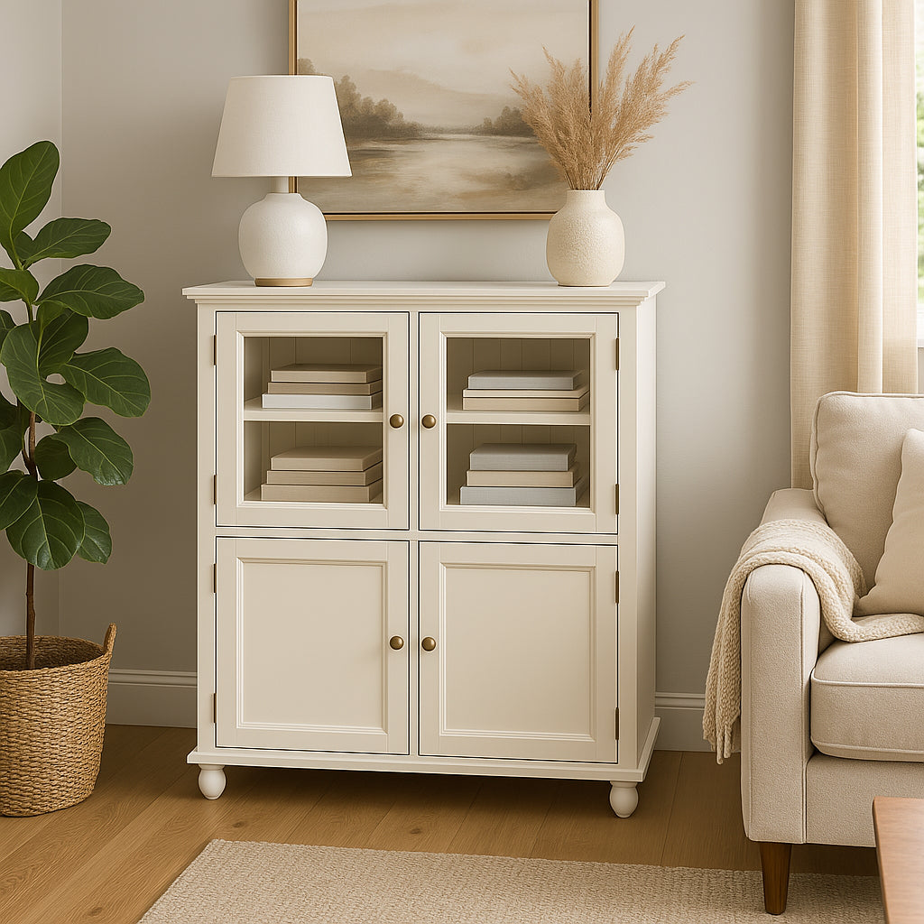 The Hampton Harbor Linen Cabinet combines elegant design with practical storage solutions. Featuring a solid wood frame, adjustable shelves, and a classic white finish, it is perfect for organizing linens or showcasing decor in any room.