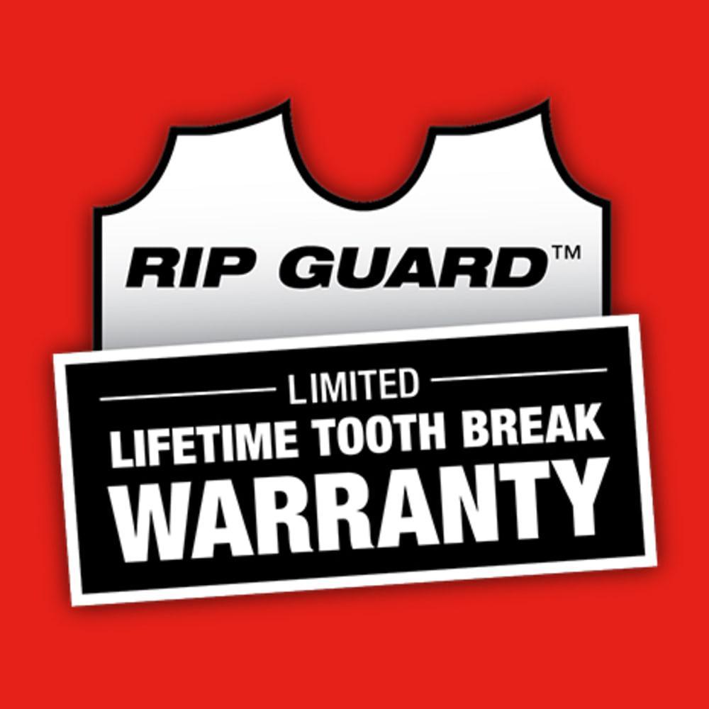 Features rip guard teeth, teeth built with more steel behind the cutting edge for added durability
