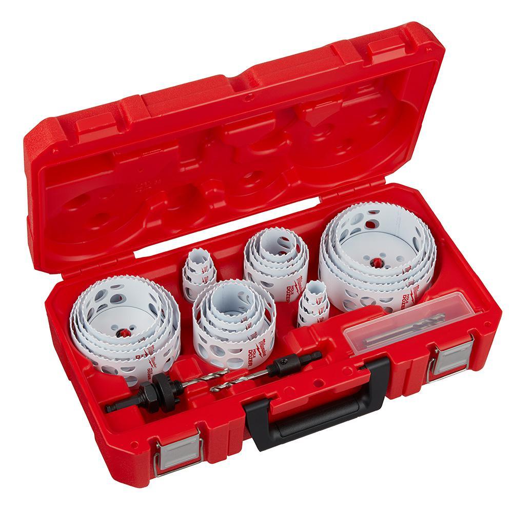 Featuring 19 pieces, this Hole Dozer Bi-Metal Hole Saw Set is built with solid steel for exceptional durability. Each set includes 14 different hole saw sizes: 3/4 in., 7/8 in., 1-1/8 in., 1-3/8 in., 1-1/2 in., 1-3/4 in., 2 in., 2-1/4 in., 2-1/2 in., 2-5/8 in., 3 in., 3-5/8 in., 4-1/8 in. and 4-3/4 in.