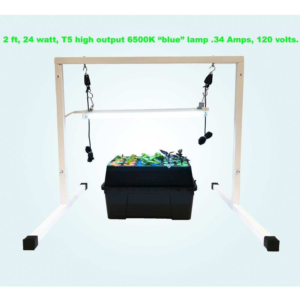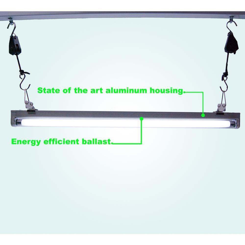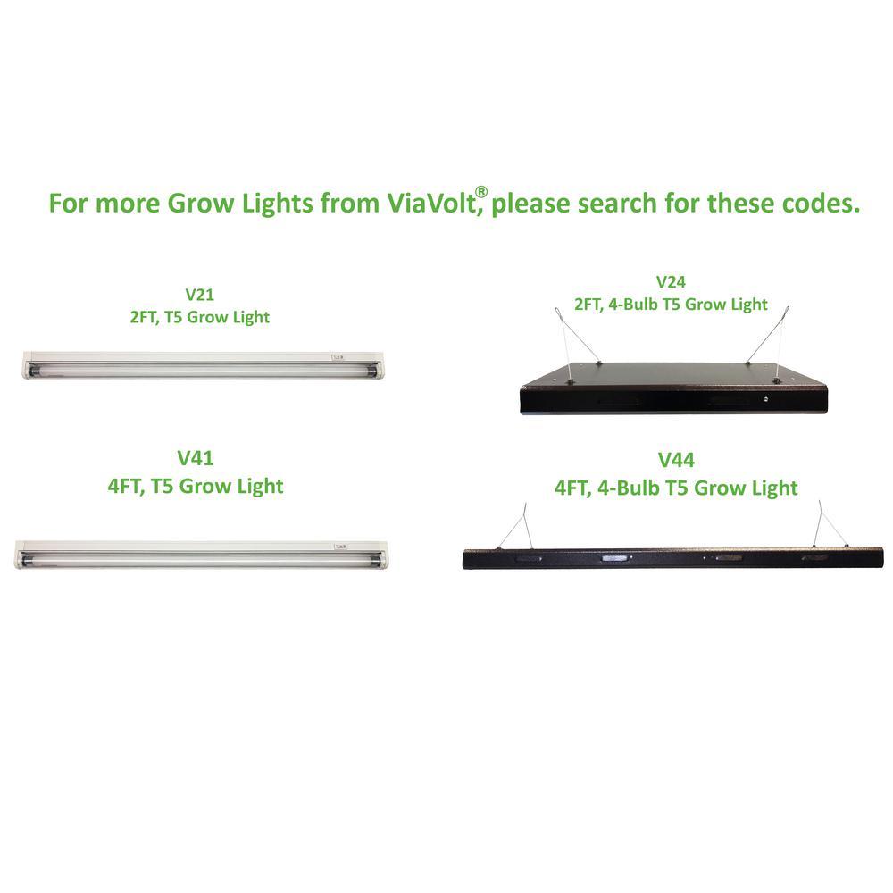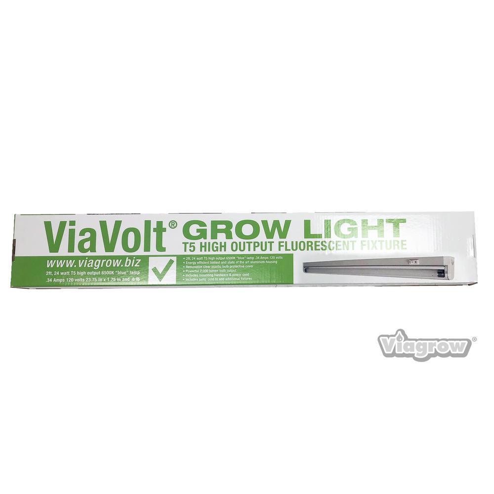 ViaVolt's 2 ft. T5 1-Bulb High Output 24-Watt Fluorescent Grow Light Fixture is ideal for effective propagation of seedlings, clones, or year-round plant maintenance. With 2,000 lumens in the blue spectrum, this fixture boasts the strongest fluorescent lighting available. It can be easily mounted or used in a propagation dome, and comes equipped with a lens, power cord, and on/off switch. Plus, it features a solid state electronic ballast from a major brand and comes with a 1-year rebuild or replacement warranty. The included 24-Watt bulb and 4 in. jumper cord allow for adding multiple fixtures together for optimal growth.