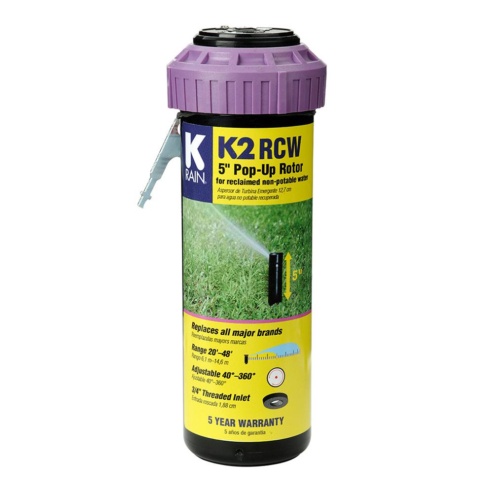 The K2 Smartset Professional 5 in. Pop-Up Gear Drive for Reclaimed Water. Easy to set patented arc adjustment from 40 - 360°, with pre-installed 2.5 GPM nozzle. Tamper resistant arc memory clutch, prevents internal gear damage and returns rotor to its prior setting. Distance adjusts with retention screw from 20 - 55 ft. 5-year warranty.