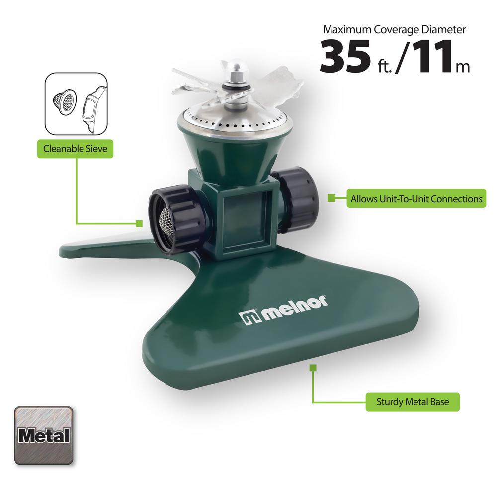 If you have a small to medium sized lawn area you need to water, the Square Pattern Sprinkler is ready to do the job. The clever whirling design produces a Square watering pattern instead of a circular pattern. The durable metal base has a flow through.