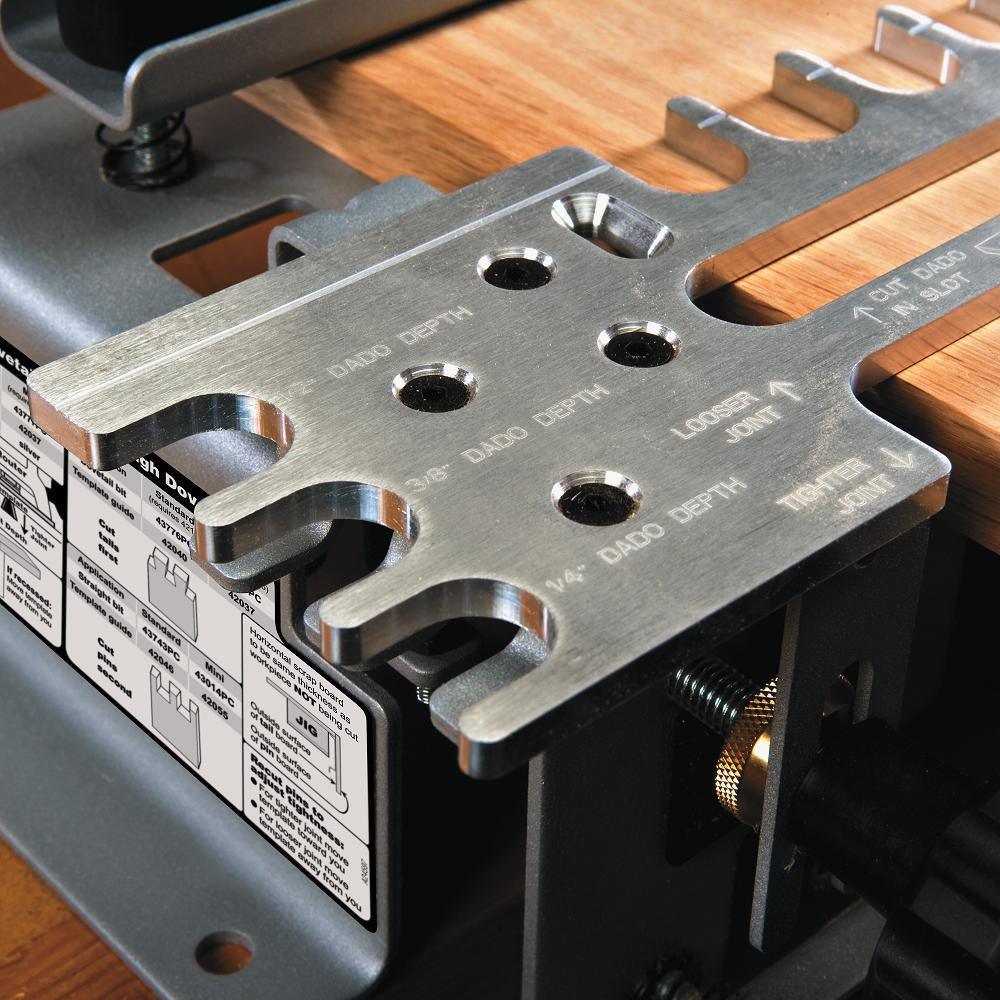 Additional templates (4213 and 4215) available to create through dovetails, box joints and miniature dovetails