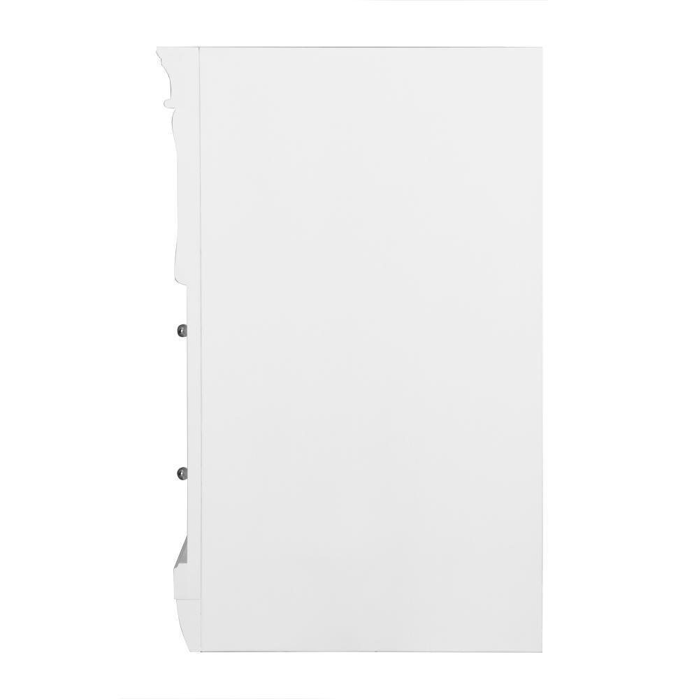 Awash with a bright white finish, this 36 in. vanity cabinet is full-bodied and sits flush with the floor. It is an attractive, stately piece with decorative accent boards that give it a splash of pizazz. Left-side double doors and three right-side drawers are equipped with gleaming chrome hardware, further enhancing its elegance. The solid, seamless construction gives homeowners and contractors the sense that it is custom-built, while the generous storage space within accepts bathroom accessories aplenty. Cap this white furniture-style bathroom vanity with a top/sink/faucet combination that ties the room together. Browse the Foremost Naples lineup for a wall mirror or linen/wall cabinet in the same white finish to augment your powder room makeover.