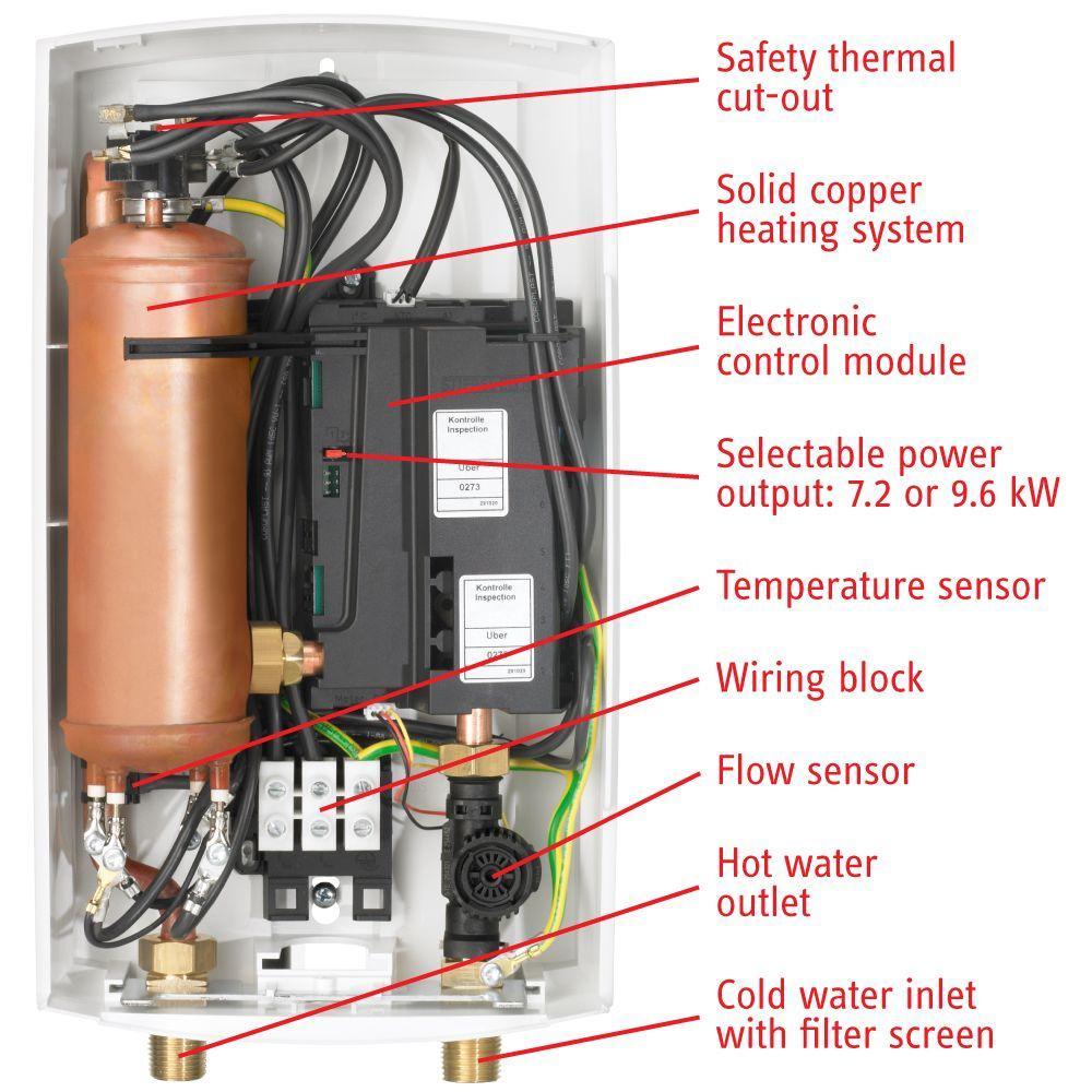 DHC-E 8/10 models are ideal for residential and commercial point-of-use sink applications including: bathrooms, cabins and cottages, office buildings, stores, malls, warehouses, restaurants, and gas stations. They are electronically controlled and can be set to deliver water at the temperature you need. They heat water instantaneously and endlessly at 99% efficiency as it flows through the unit. Because they do not store hot water like tank water heaters, they have no stand-by energy losses. Venting is not necessary and the compact European design can be installed with the unit visible. A DHC-E is considerably smaller than a tank, saving space and allowing flexibility to determine the best location for installation. The number of sinks a DHC-E can deliver hot water to depends on the temperature of the incoming cold water, the flow rate through the unit, whether supply voltage is 208 or 240, and which power output the unit is set to. Refer to the DHC-E Sizing Guide to determine which model you need. Call Stiebel Eltron at 800.582.8423 with any questions. Stiebel Eltron invented tankless electric water heating technology more than 90 years ago, and is still the industry pioneer and world leader today, with an engineering and manufacturing tradition of excellence.
