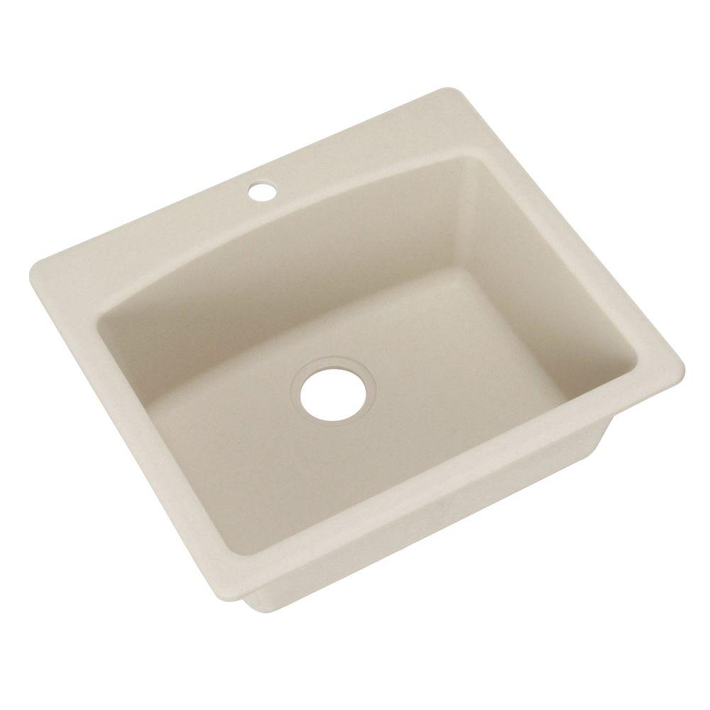 This stylish 25 in. composite granite kitchen sink from FrankeUSA possesses the elegance and resilience of natural stone, upgrading the aesthetic and improving the functionality of your space. The single-bowl setup provides abundant room for prep work and cleanup chores, and the hearty composition won't dent, scratch, stain or chip. A bacteria-fighting Sanitized barrier is built into this fashionable onyx sink to suppress bacteria, keeping germ buildup to a minimum between cleanings. It's designed for drop-in or undermount installation to match your desired countertop application and features one predrilled hole on the rear deck to accommodate your preferred faucet (sold separately).