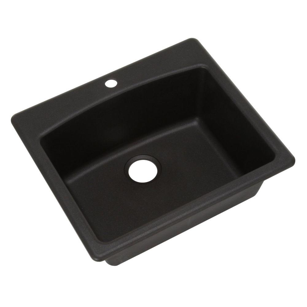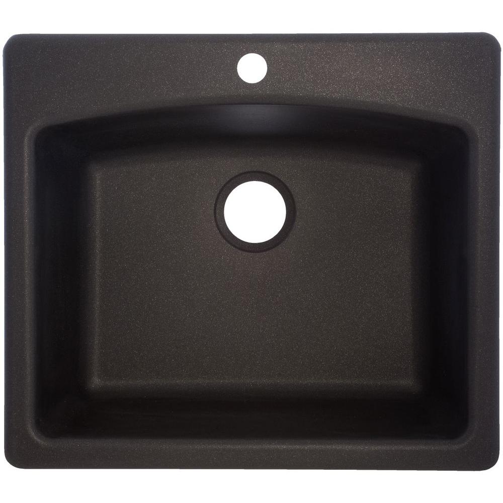 Dual Mount Composite Granite 25.in 1-Hole Single Bowl Kitchen Sink in Onyx
