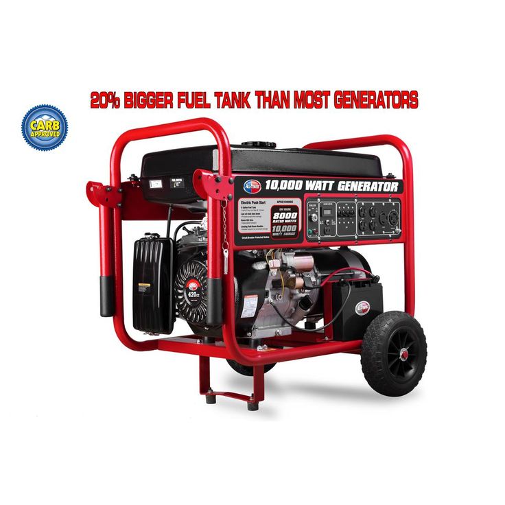 APGG10000C is the CARB version of All Power's most powerful gasoline generator. It provides steady performance with a lot of bonus features, including electric push start feature, wheel kit and free battery. Electric push start allows you to start the generator easily while wheel kit lets you handle the unit easily. It operates at low noise level of 76dB.