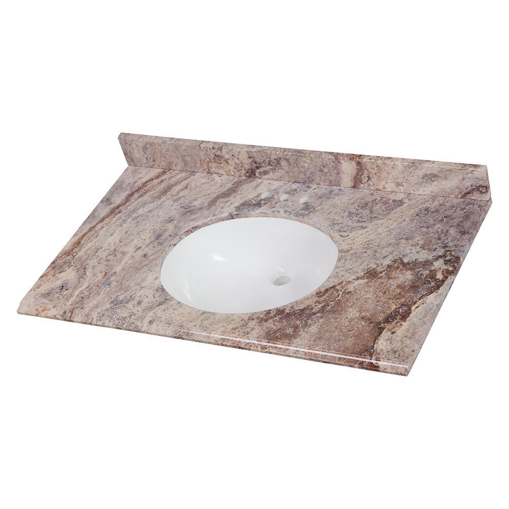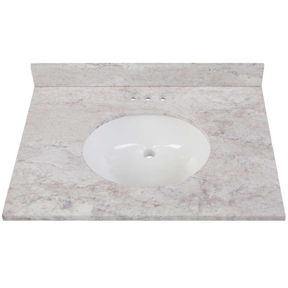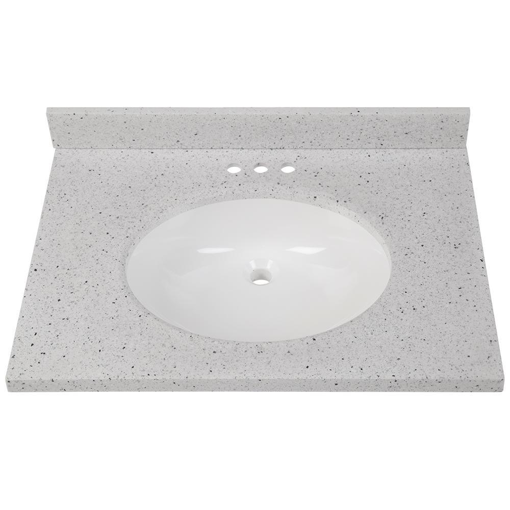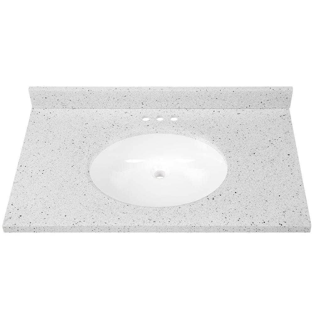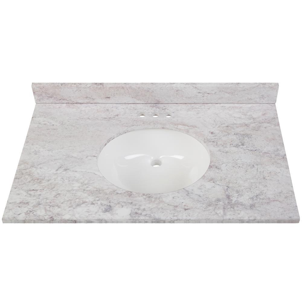 This St. Paul Stone Effects top in Cascade is designed for a 30 in. x 21 in. vanity. Easy to install, it features the look of natural stone without the difficulties such as sealing associated with other materials. Cascade is a very light, airy design sure to brighten any space.