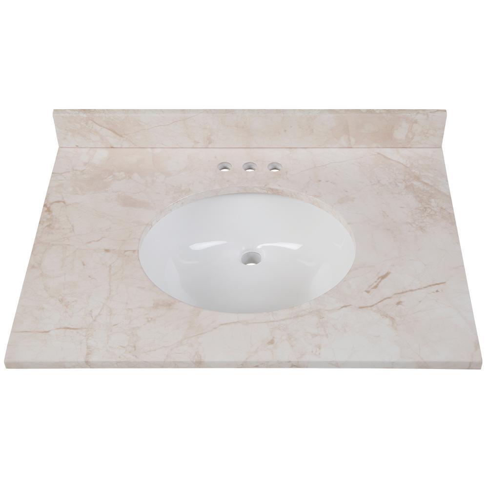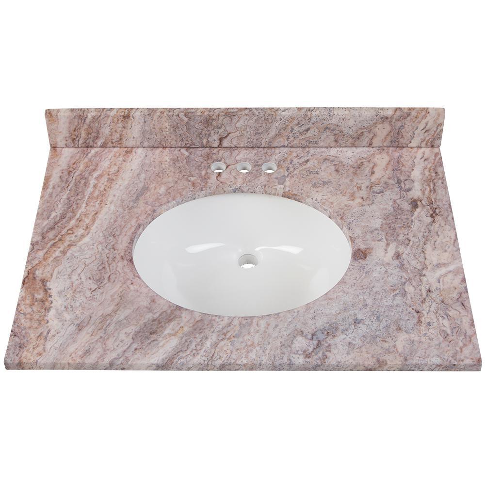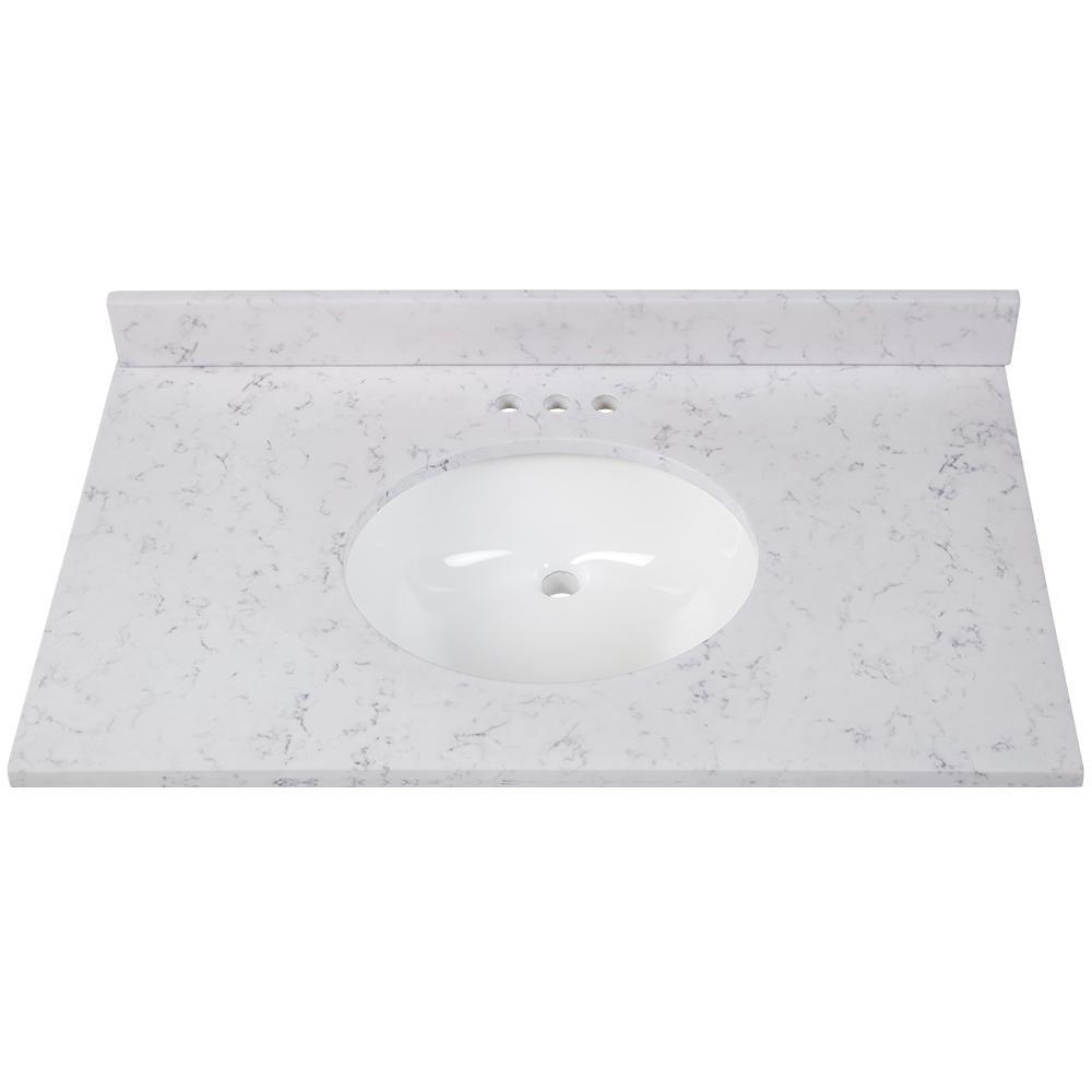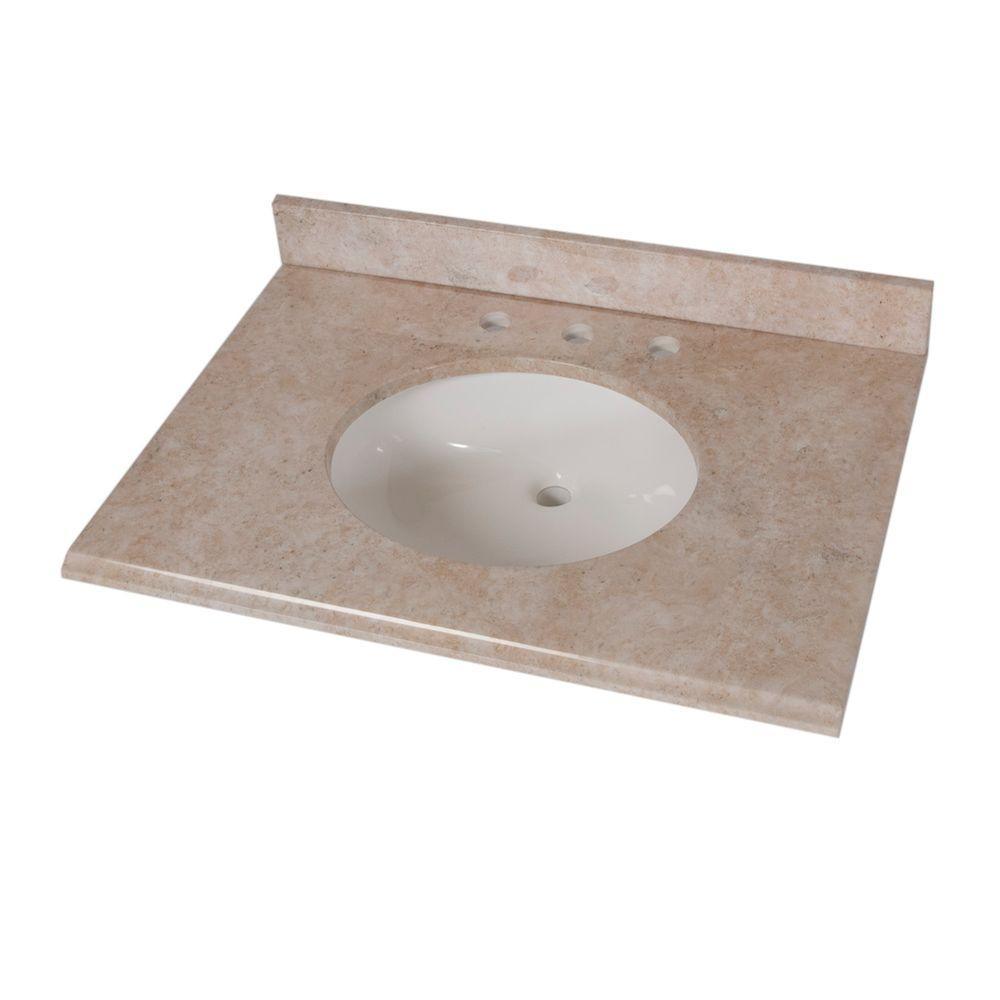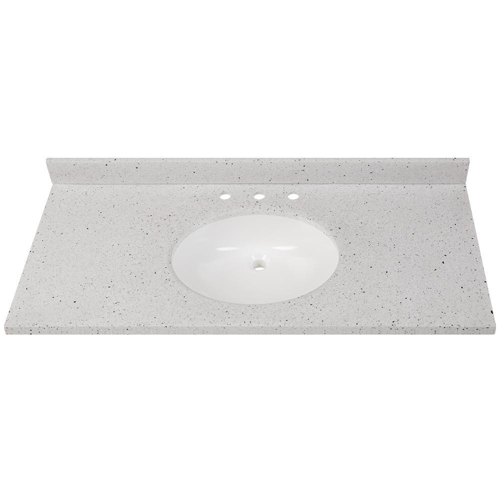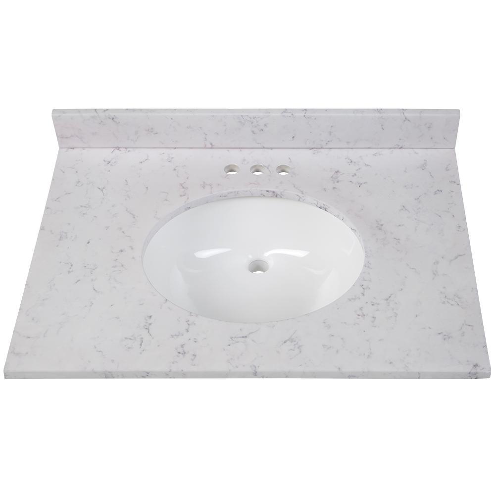 This St. Paul Stone Effects top in Cascade is designed for a 30 in. x 21 in. vanity. Easy to install, it features the look of natural stone without the difficulties such as sealing associated with other materials. Cascade is a very light, airy design sure to brighten any space.
